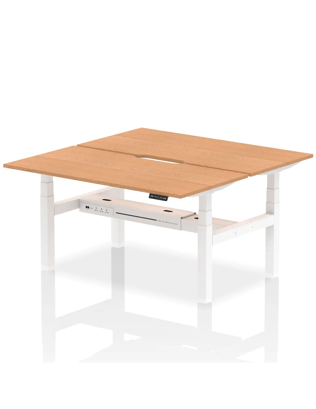 - Yes, the desk features smooth dual electronic motors with four programmable memory height settings, allowing users to switch effortlessly between sitting and standing positions. This flexibility supports healthier working habits and personalised comfort for two users simultaneously.