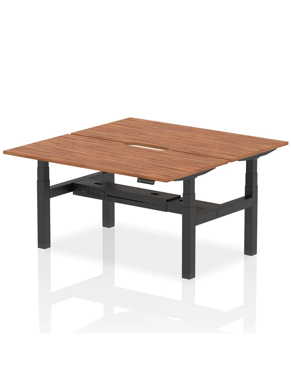 Dynamic Air 1600 x 800mm Height Adjustable 2 Person Bench Desk Walnut Top Scalloped Edge