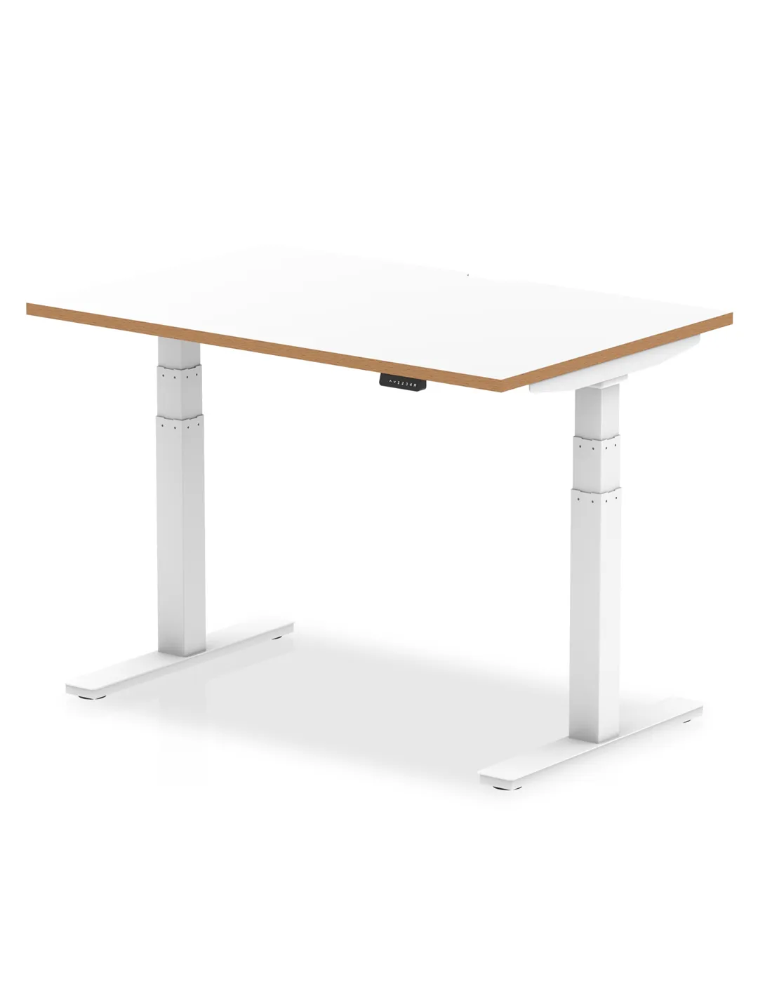 Dynamic Oslo 1200mm Height Adjustable Office Desk White Top Natural Wood Edge