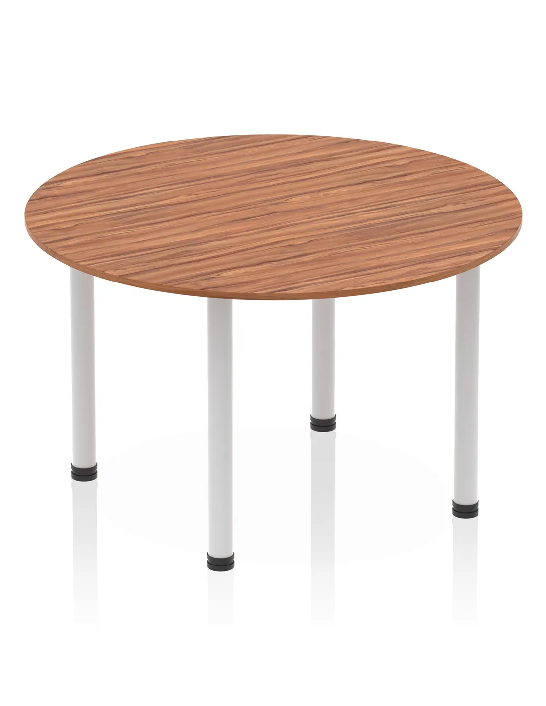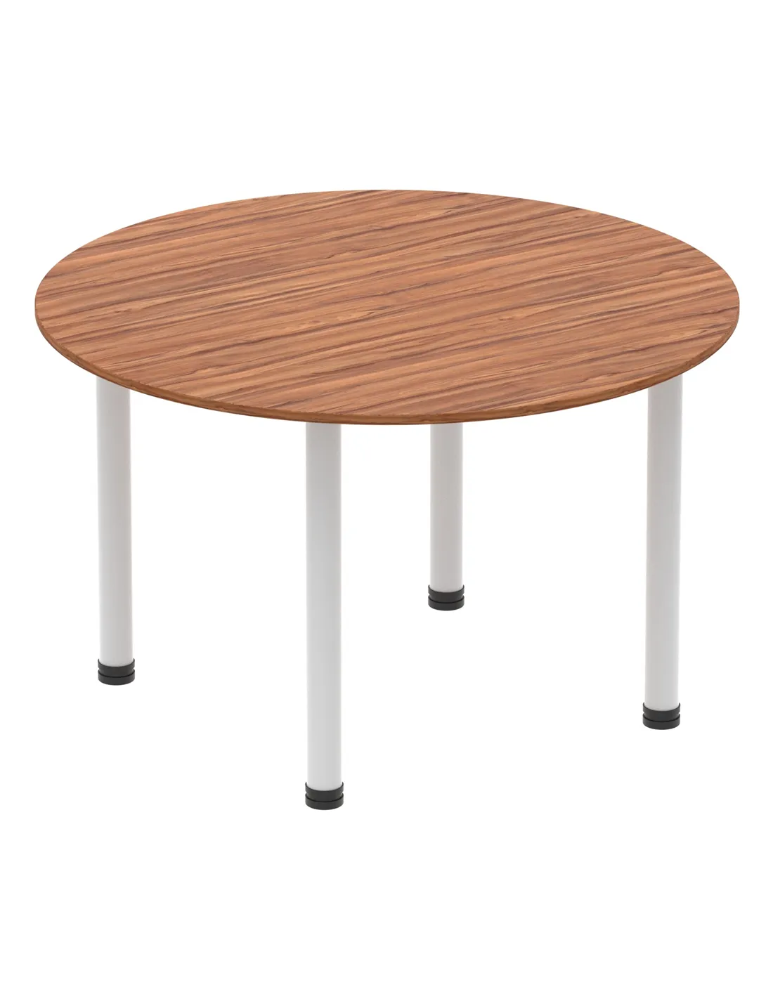 - This versatile round table is perfect for collaborative workspaces, meeting rooms, and breakout areas. Its 1200mm diameter offers ample space for team discussions or casual dining, while the elegant walnut finish and silver legs complement modern office or home interiors. Customers often use it as a stylish centrepiece in both professional and domestic settings.