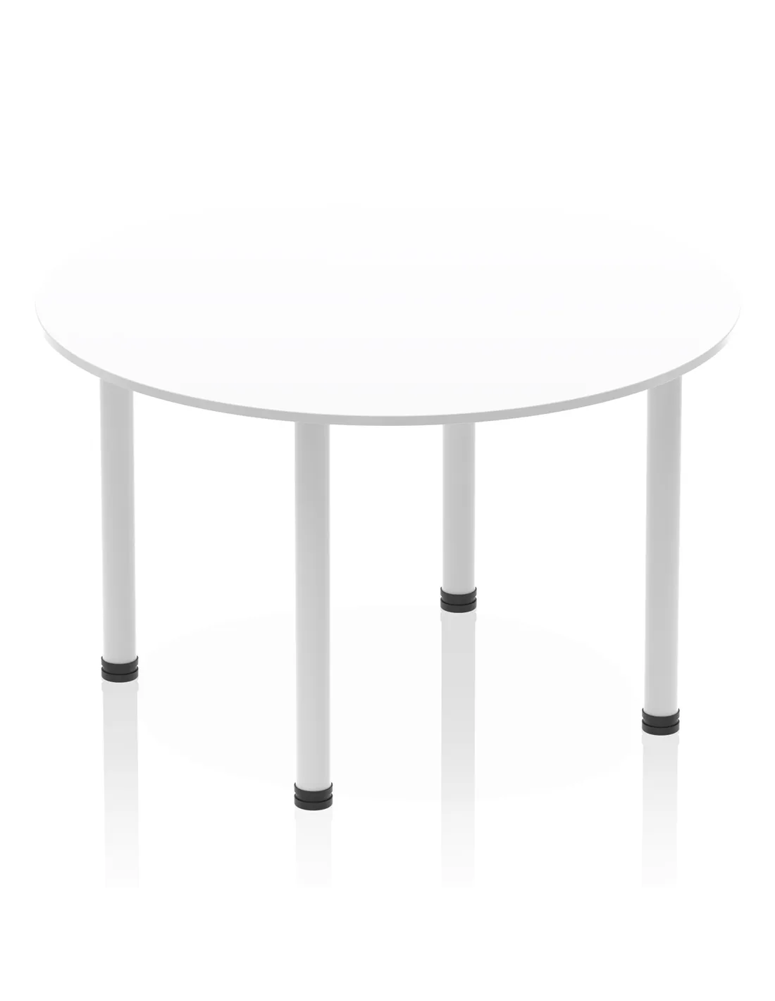 Dynamic Impulse 1200mm Round Table White Top Silver Post Leg
