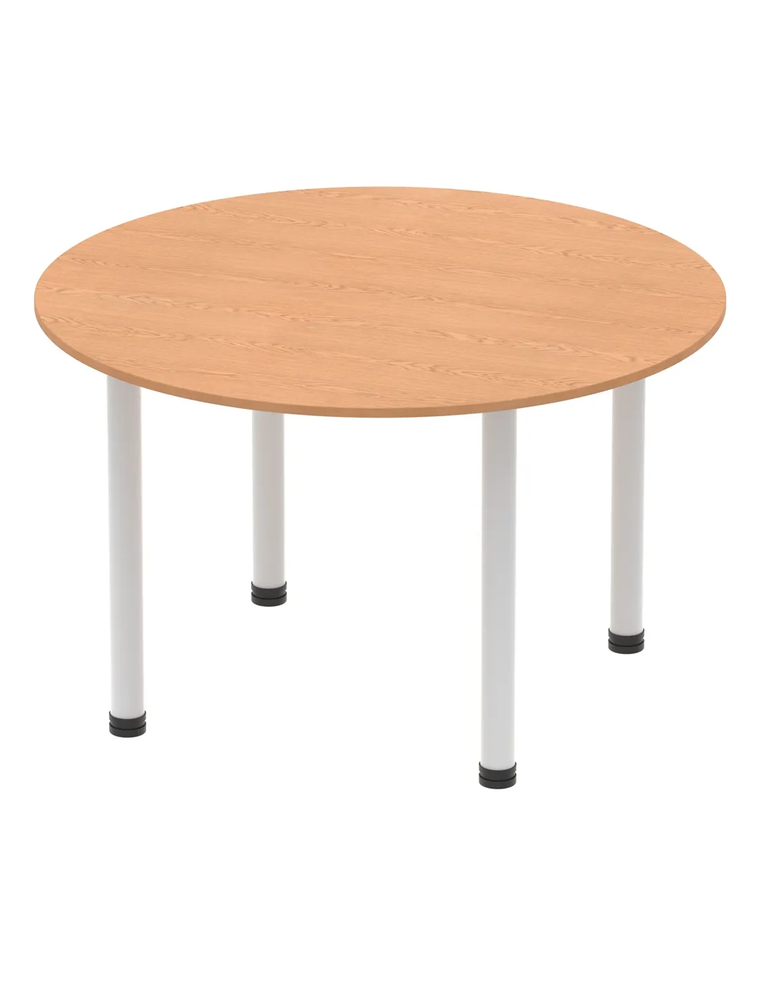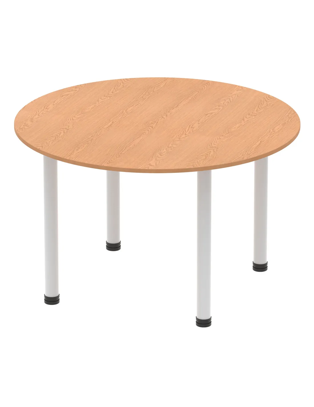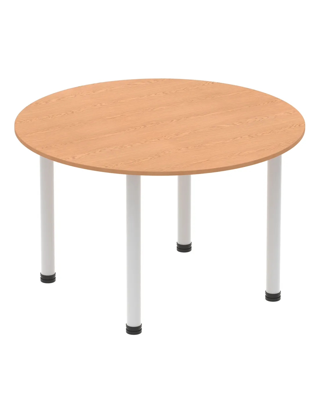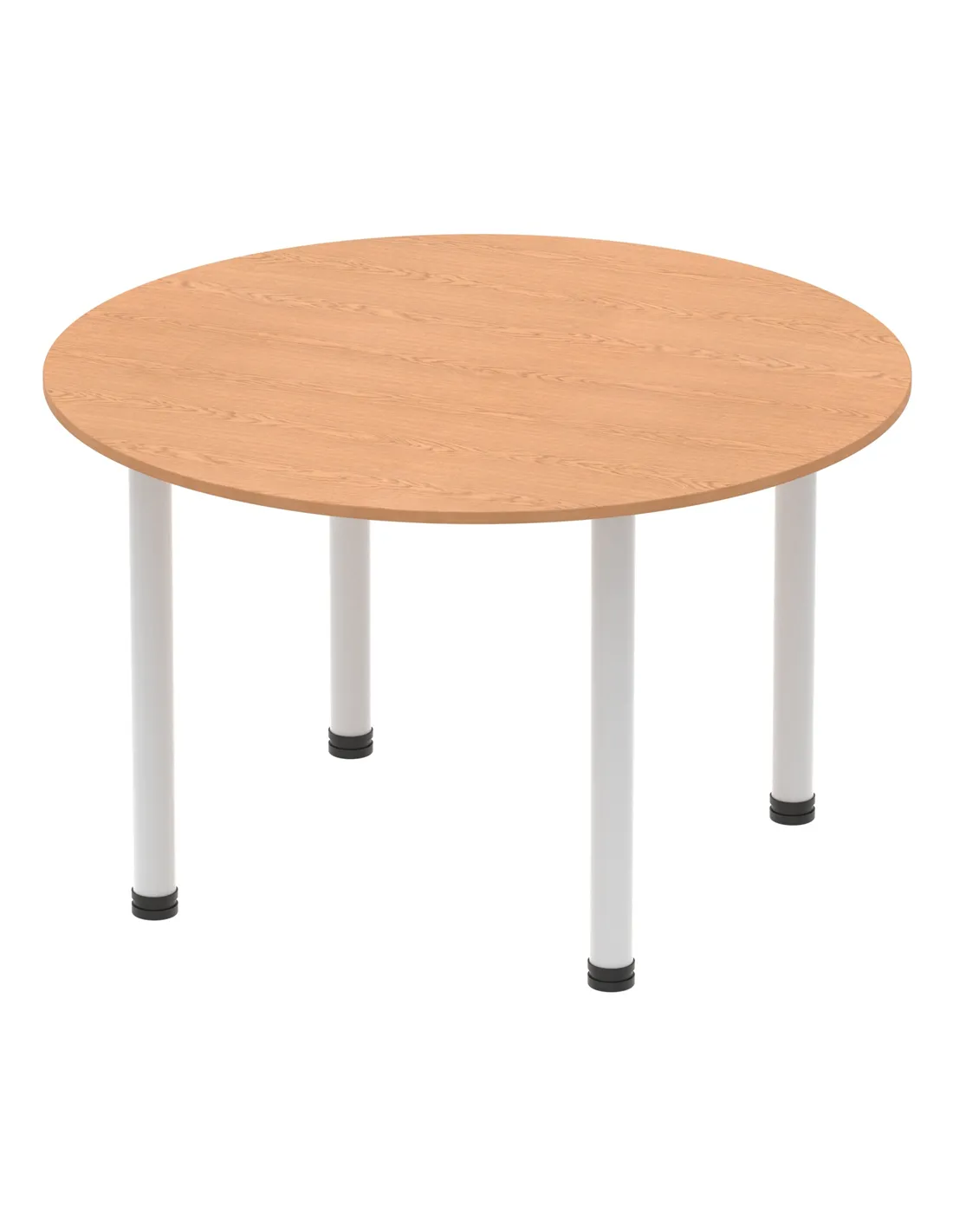 - This versatile round table is perfect for collaborative workspaces, meeting rooms, and breakout areas. Its 1200mm diameter offers ample space for team discussions or casual dining, making it a practical addition to both office and home environments. The oak finish and silver legs complement modern interiors, enhancing any setting with a professional yet inviting look.