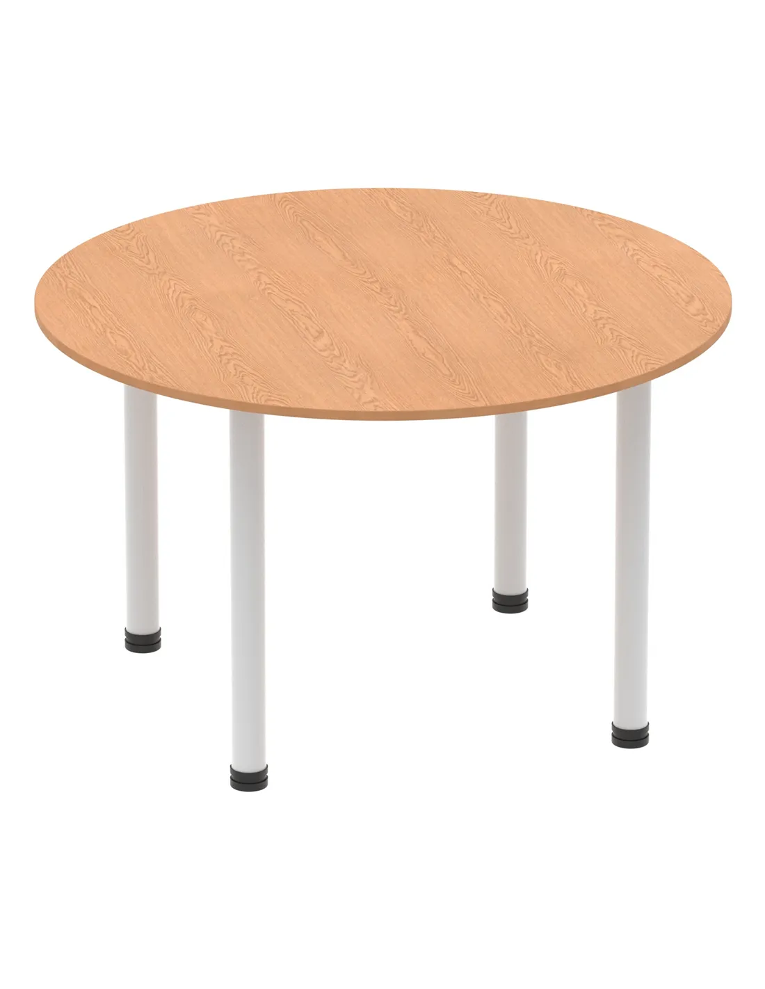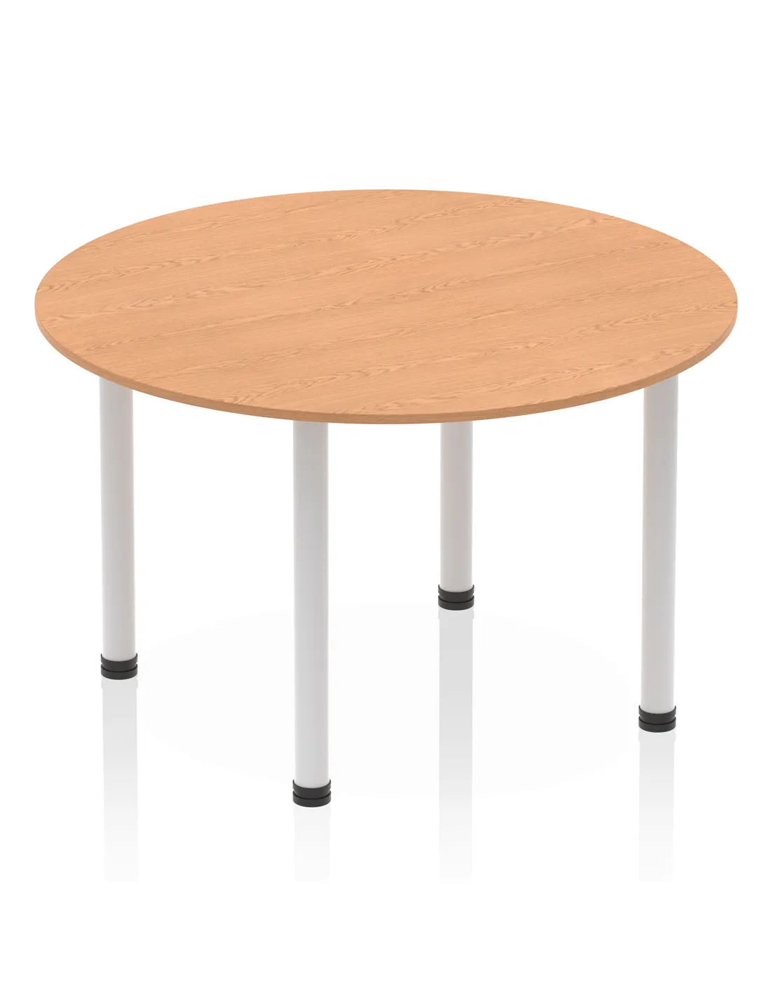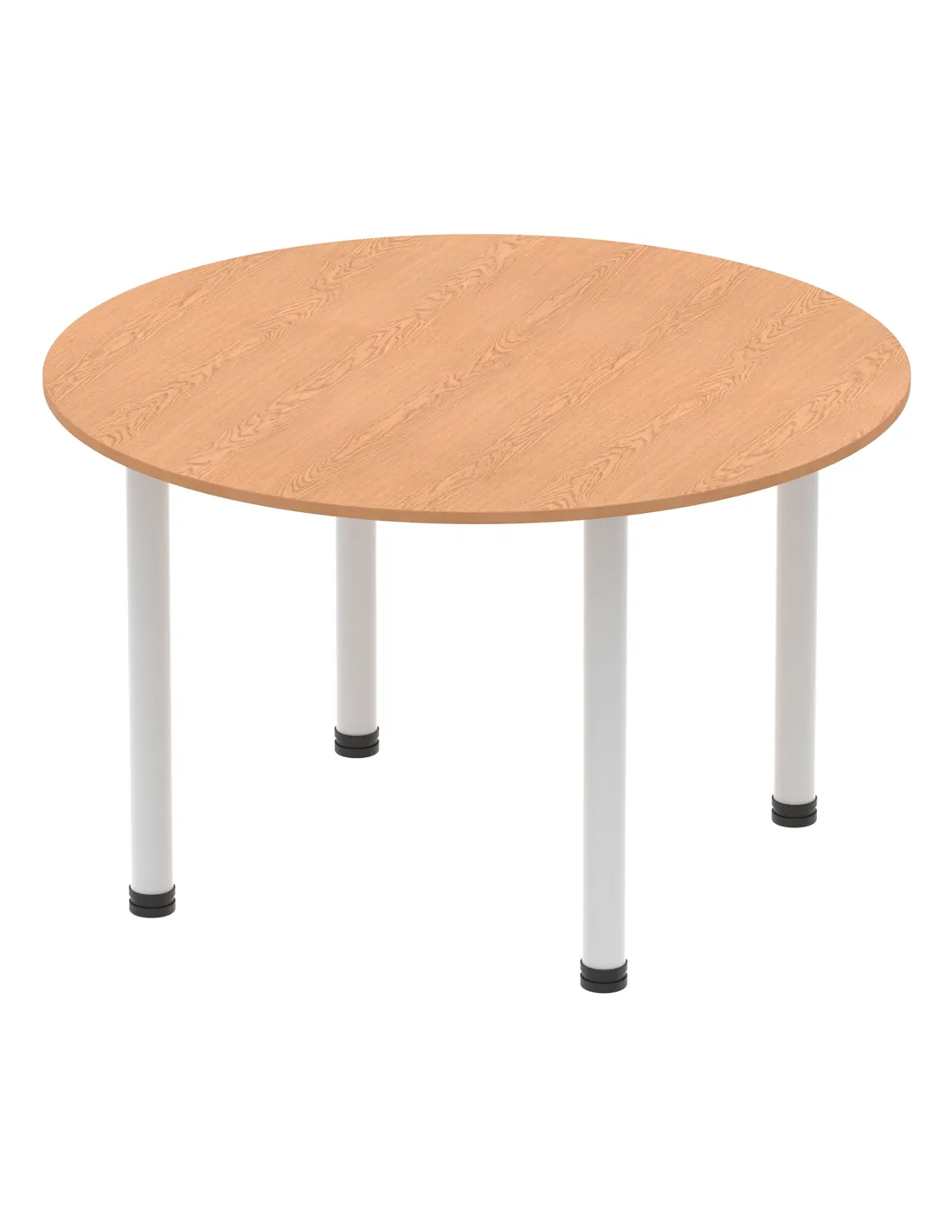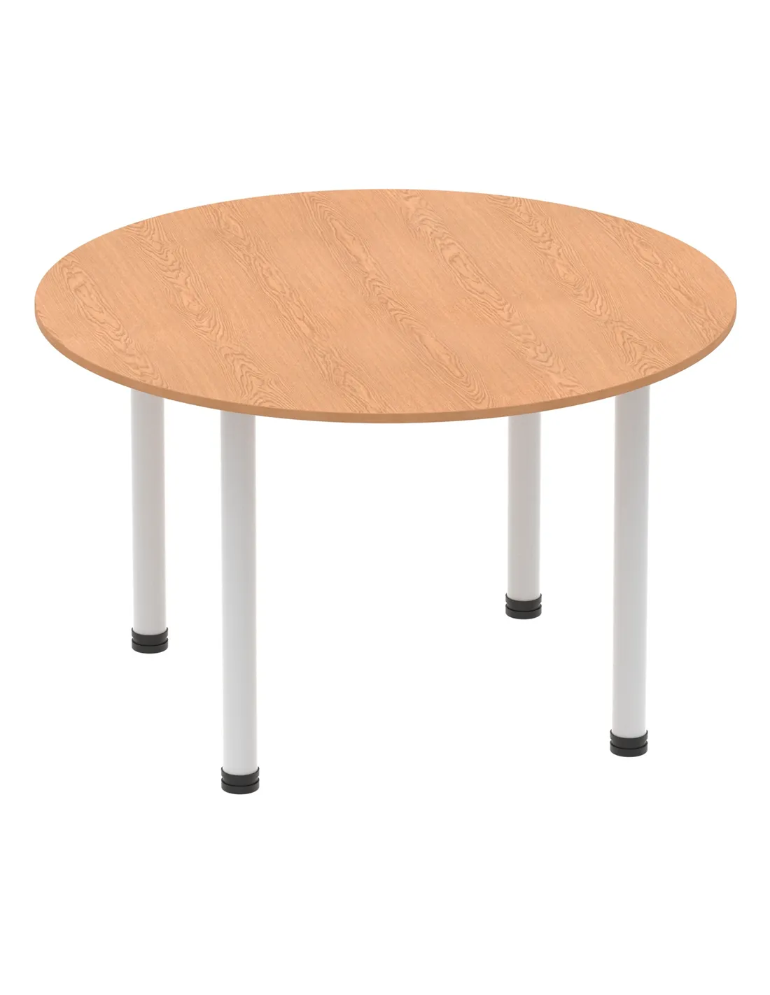 - This versatile round table is perfect for collaborative workspaces, meeting rooms, and breakout areas. Its 1200mm diameter offers ample space for team discussions or casual dining, making it a practical addition to both office and home environments. The oak finish and silver legs complement modern interiors, enhancing any setting with a professional yet inviting look.