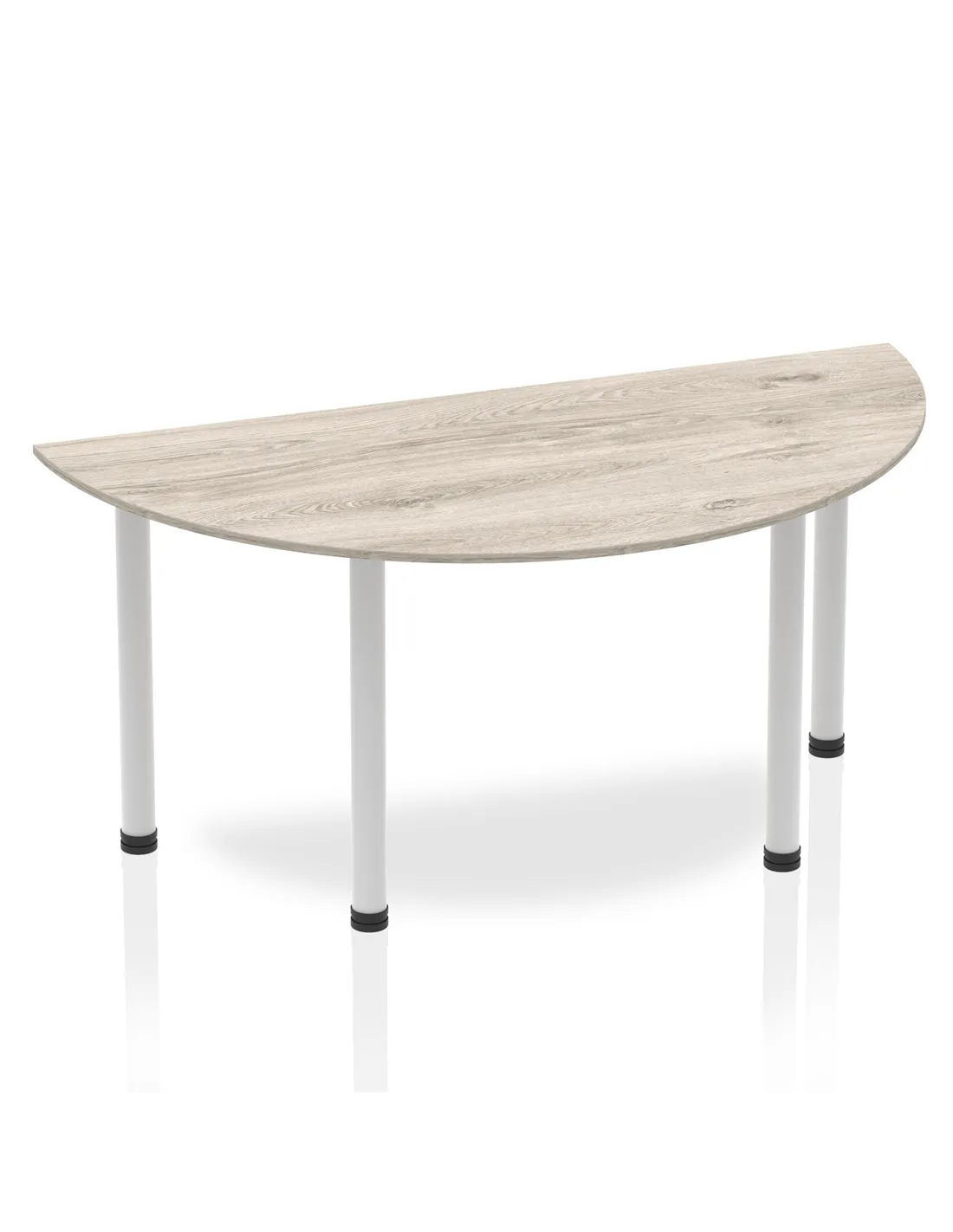 Dynamic Impulse 1600mm Semi-Circle Table Grey Oak Top Silver Post Leg