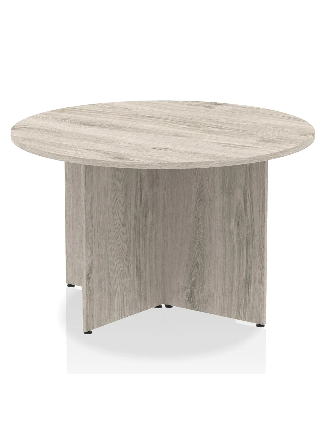 Dynamic Impulse 1200mm Round Table Grey Oak Top Arrowhead Leg