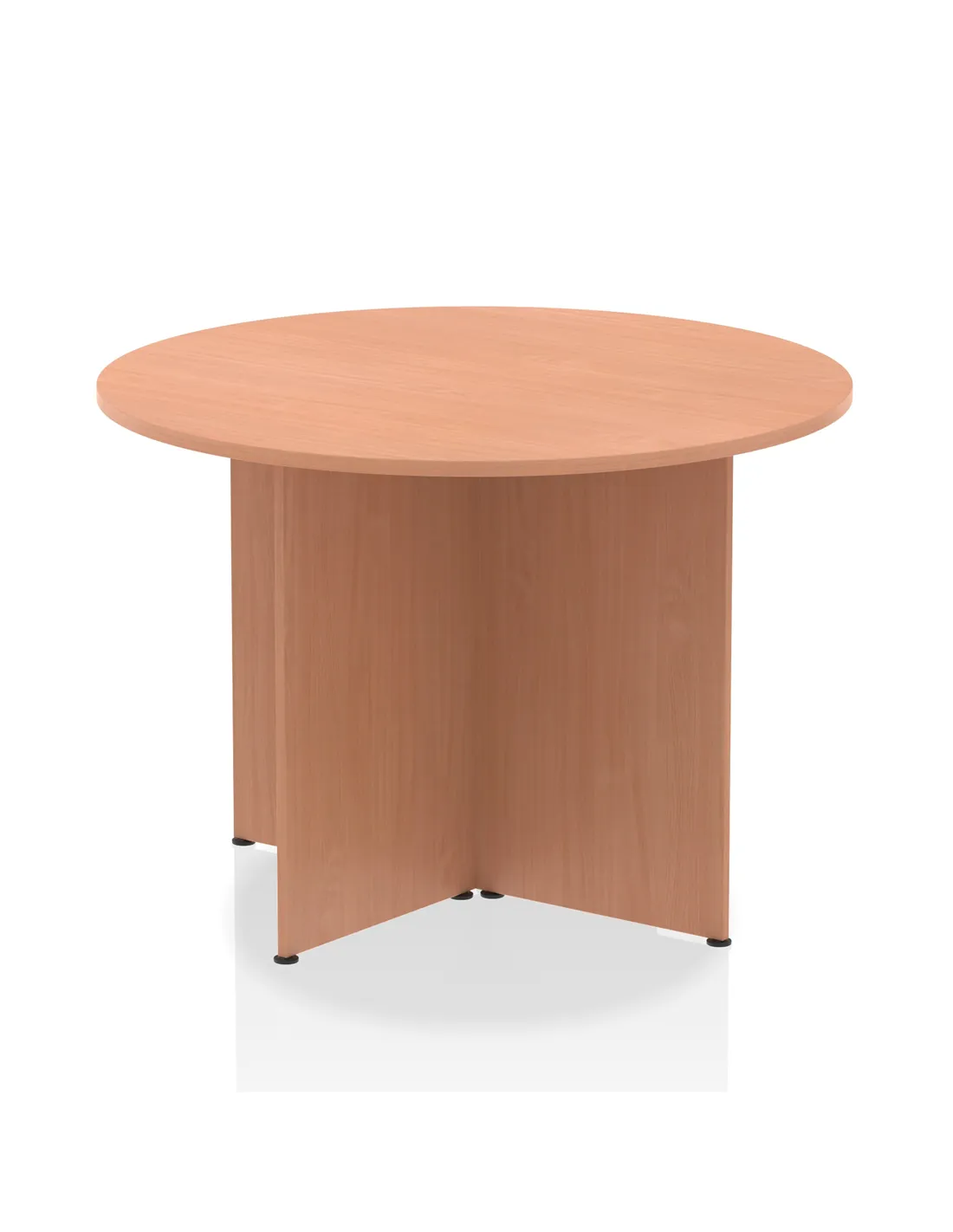 - This versatile round table is perfect for collaborative workspaces, meeting rooms, and breakout areas. Its compact 1000mm diameter and sturdy arrowhead legs create an inviting environment for team discussions, casual meetings, or even as a stylish dining table in home offices or small kitchens.