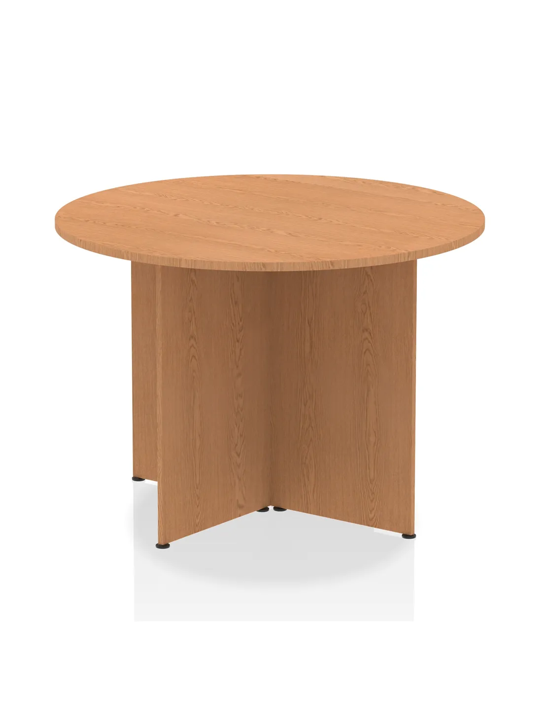 - This versatile round table is perfect for collaborative workspaces, meeting rooms, and breakout areas. Its 1000mm diameter offers ample space for team discussions or casual meetings, while the oak finish adds a warm, professional touch to any office or home environment. Customers often use it as a stylish dining or conference table, appreciating its blend of functionality and design.