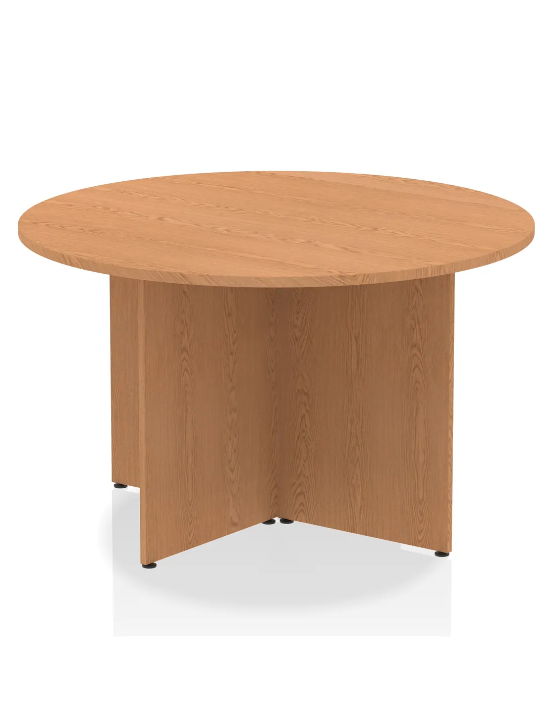 - This versatile round table is perfect for collaborative workspaces, meeting rooms, and breakout areas. Its 1200mm diameter offers ample space for team discussions or casual meetings, while the oak finish and distinctive arrowhead legs add a touch of elegance to any office or home environment. Customers often highlight its suitability for both professional and creative settings.