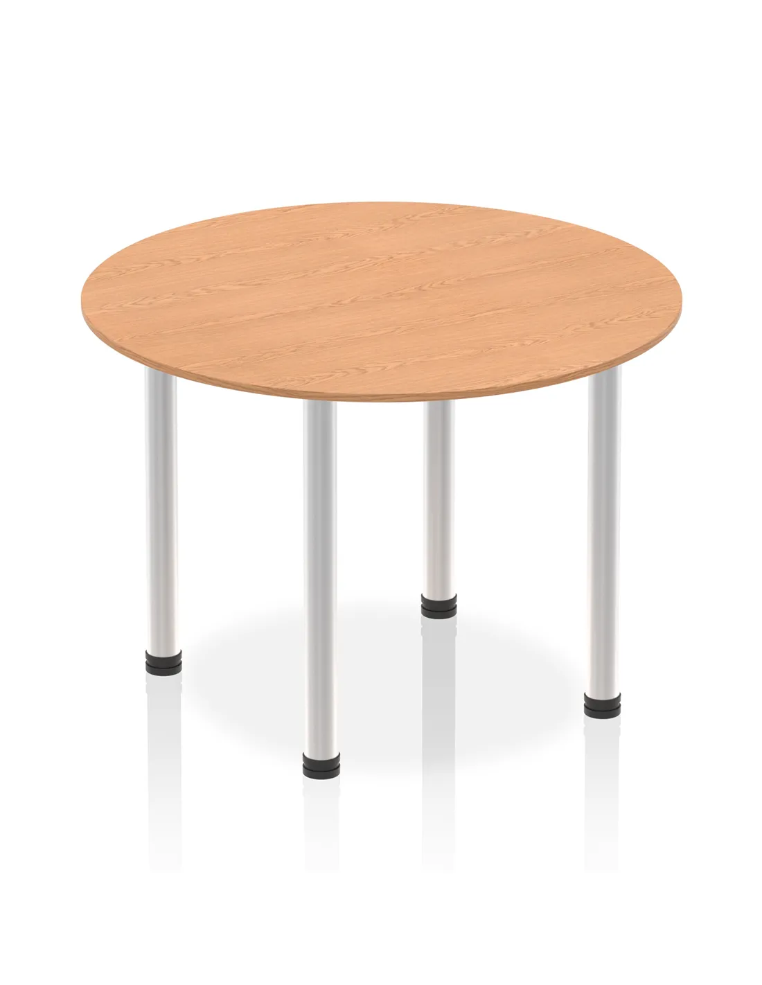 Dynamic Impulse 1000mm Round Table Oak Top Brushed Aluminium Post Leg
