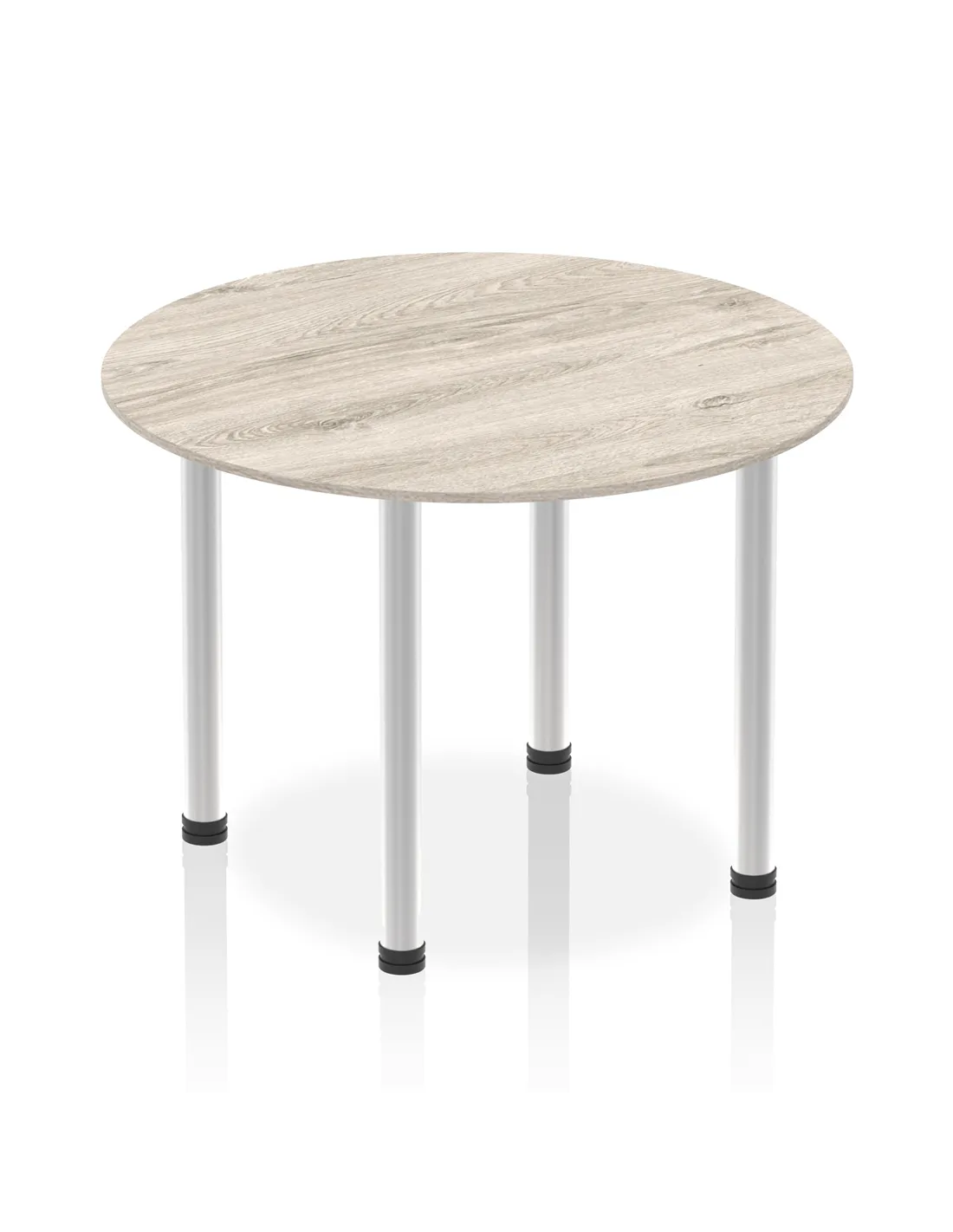 Dynamic Impulse 1000mm Round Table Grey Oak Top Brushed Aluminium Post Leg