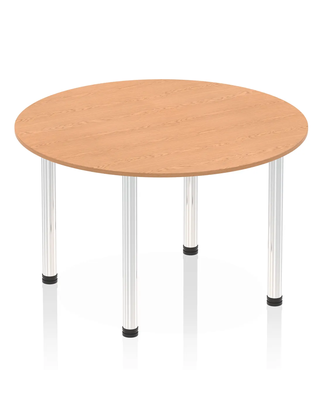 - This versatile round table is perfect for collaborative workspaces, meeting rooms, or breakout areas. Its 1200mm diameter provides ample space for team discussions or casual meetings, while the oak finish and chrome legs add a modern touch to any office or home environment.