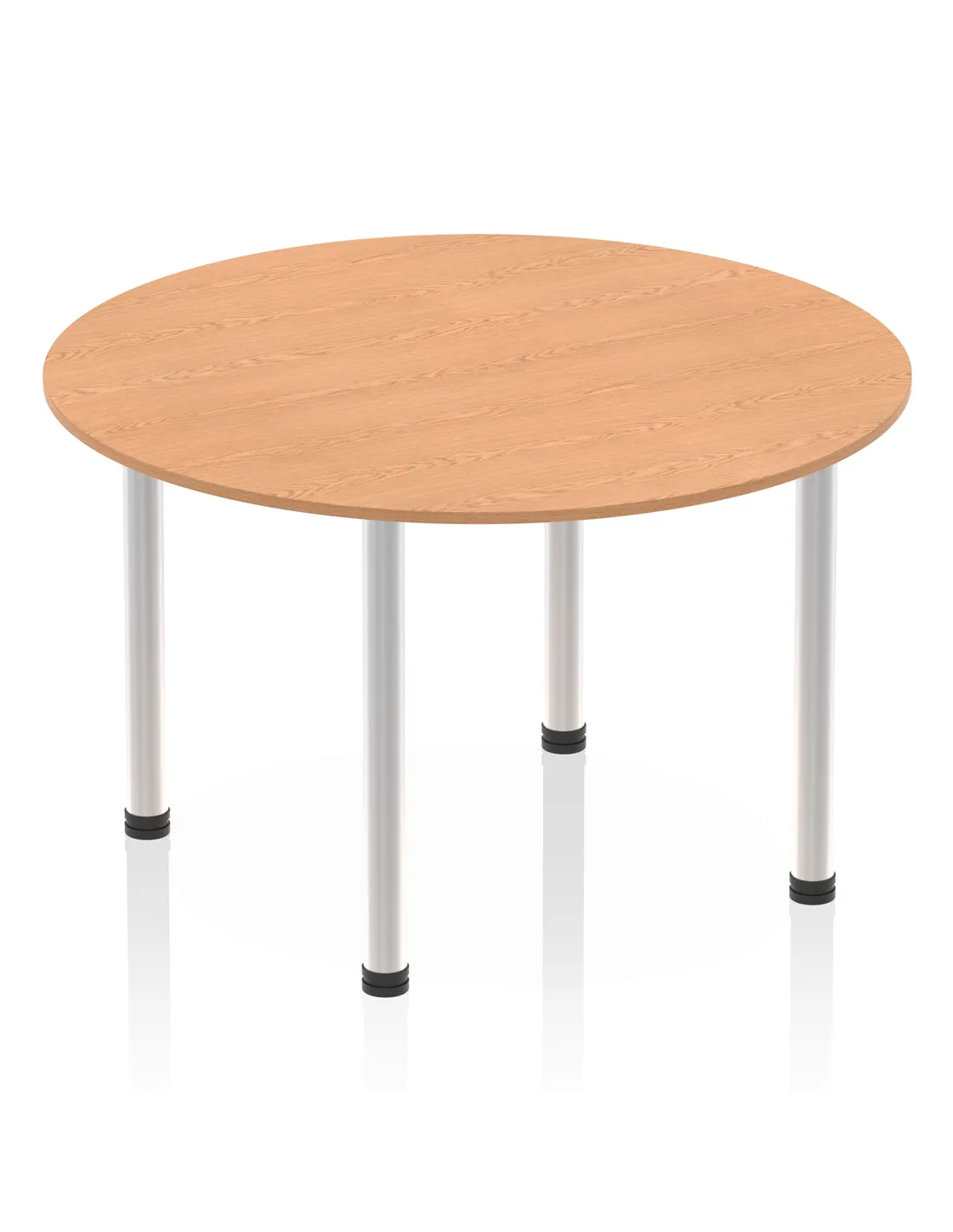 Dynamic Impulse 1200mm Round Table Oak Top Brushed Aluminium Post Leg