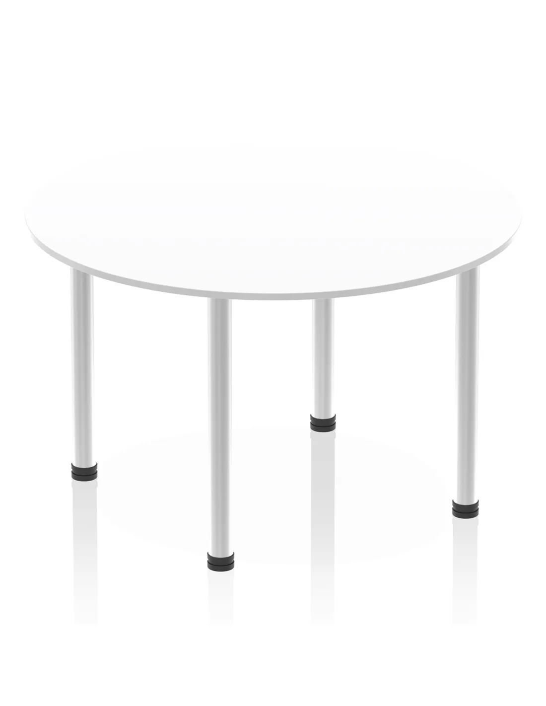 Dynamic Impulse 1200mm Round Table White Top Brushed Aluminium Post Leg
