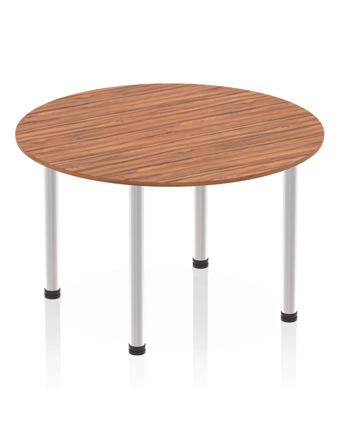 Dynamic Impulse 1200mm Round Table Walnut Top Brushed Aluminium Post Leg