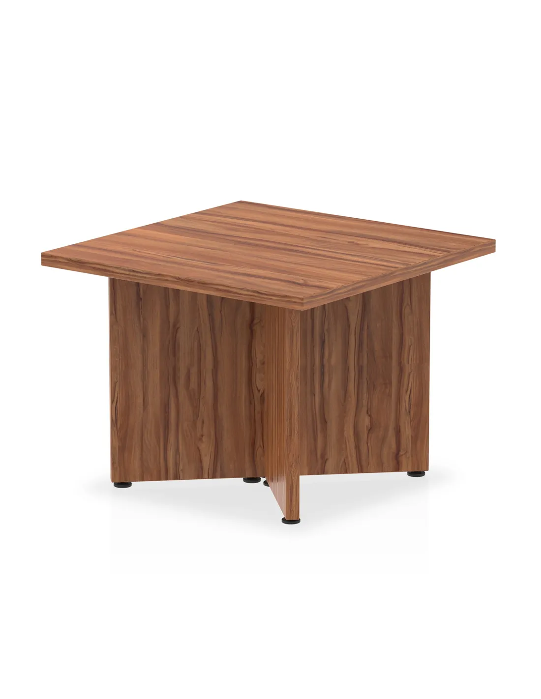 - This versatile coffee table is perfect for both office and home environments. Its compact 600mm square surface and stylish walnut finish make it an excellent choice for informal meeting areas, reception lounges, or living rooms. The distinctive arrowhead legs add a modern touch, complementing contemporary interiors while providing a sturdy base for daily use.