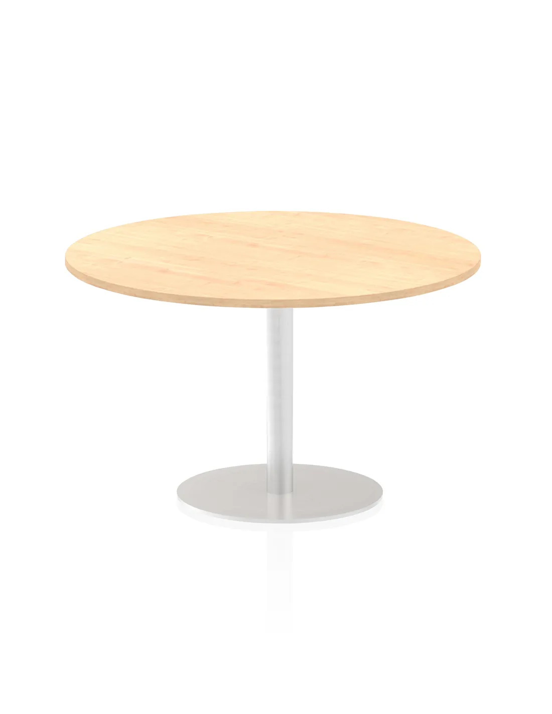 - This versatile round table is perfect for a variety of settings including office meeting rooms, conference areas, boardrooms, and dining spaces. Its stylish maple finish and brushed steel base complement modern interiors, making it suitable for both professional and social environments.
