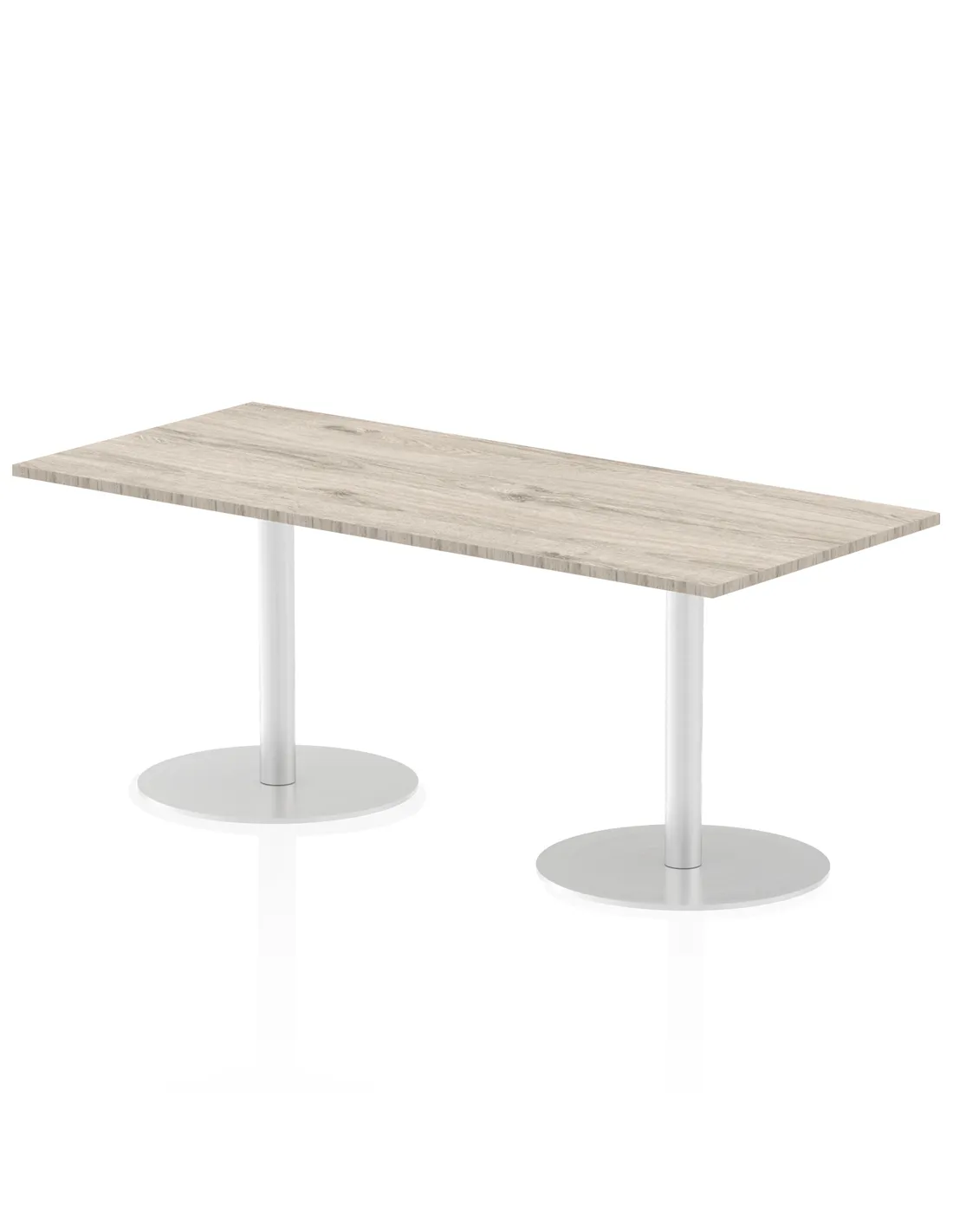 - The Dynamic Italia poseur table is versatile, perfectly suited for office meeting rooms, conference areas, boardrooms, and stylish dining spaces. Its sleek grey oak melamine top and brushed steel base complement modern interiors, providing a practical and elegant surface for collaborative work or social gatherings.