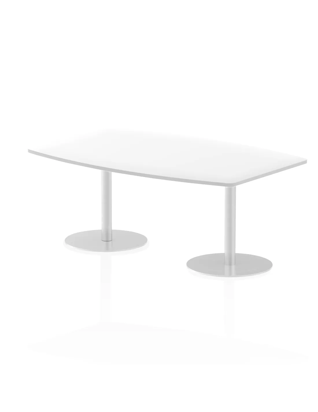 Italia is the ultimate style statement - whether for meetings, conferences, boardrooms or dining areas. This table is topped by a spectacular writeable/wipe clean hi-gloss boat-shaped top. Underneath the brushed steel trumpet base and post design looks striking and has the practicality of eliminating any knee and leg traps underneath.
