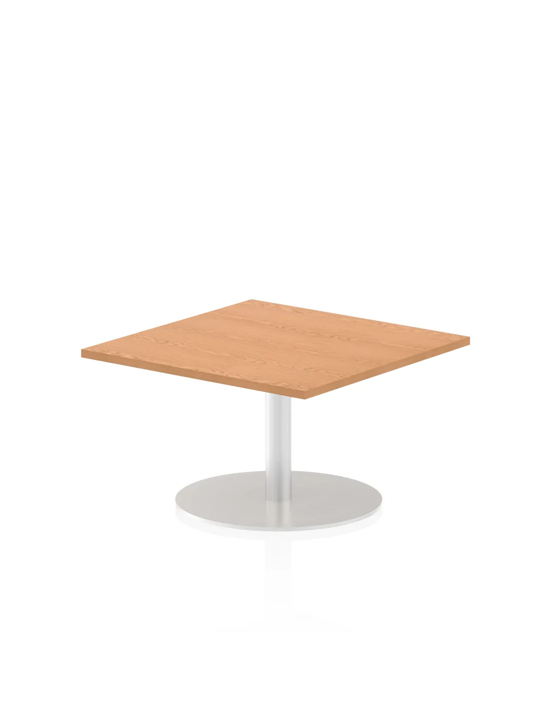 - The Dynamic Italia 800mm Poseur Table with its oak finish and sleek brushed steel base is perfect for a variety of settings including office meeting rooms, conference areas, boardrooms, and stylish dining spaces. Its compact square design and 475mm high legs make it especially suitable for casual standing or bistro-style seating arrangements, adding a modern touch to any environment.