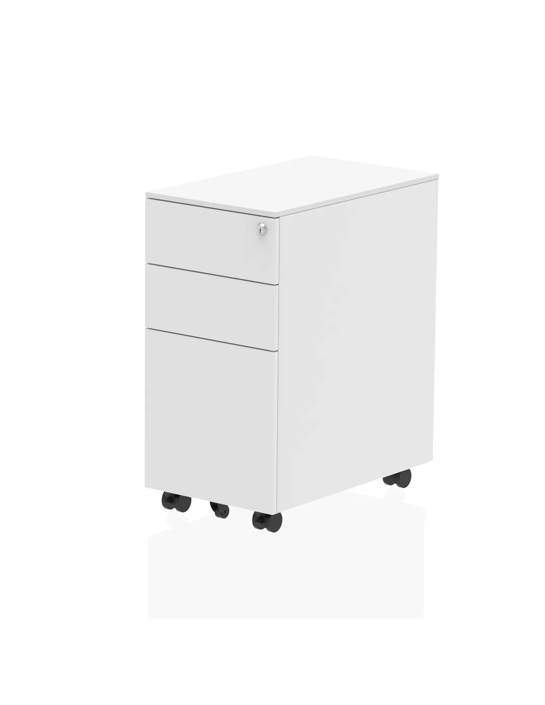 At FastDaddy, with over 12 years of experience in online retail, we proudly present the Dynamic Steel Slim Mobile Pedestal White I000906 by Dynamic Office Solutions - a trusted name in British office furniture since 2006. This sleek, compact storage unit combines durability with practicality, crafted from high-quality steel and finished in a bright white coating that complements modern workspaces.