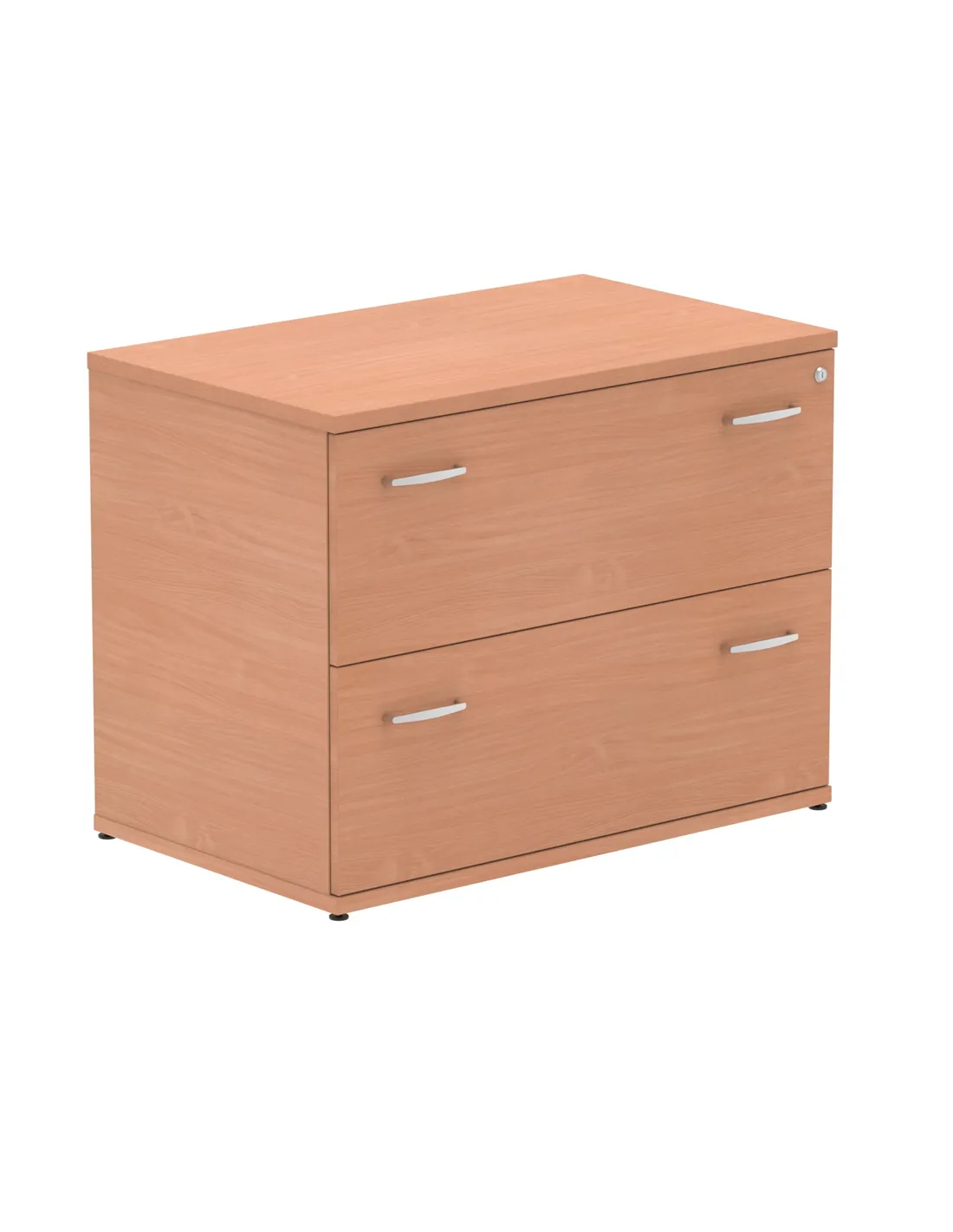 - This filing cabinet offers two lateral drawers with foolscap capacity, steel handles, adjustable feet, and a durable beech finish. It supports up to 20kg per drawer and features protective ABS edging for enhanced durability.
