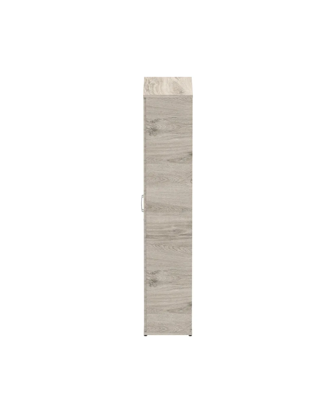 - This tall storage cupboard is perfect for organising office supplies, documents, and personal items in professional or home office environments. Its adjustable shelves and locking doors make it suitable for secure storage of files and equipment, while the stylish Grey Oak finish complements modern interiors.