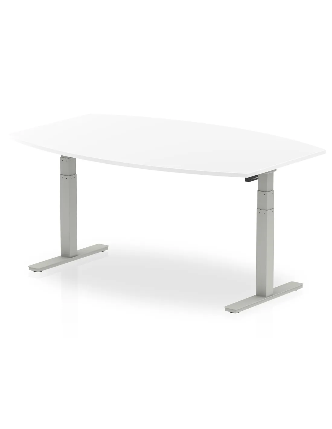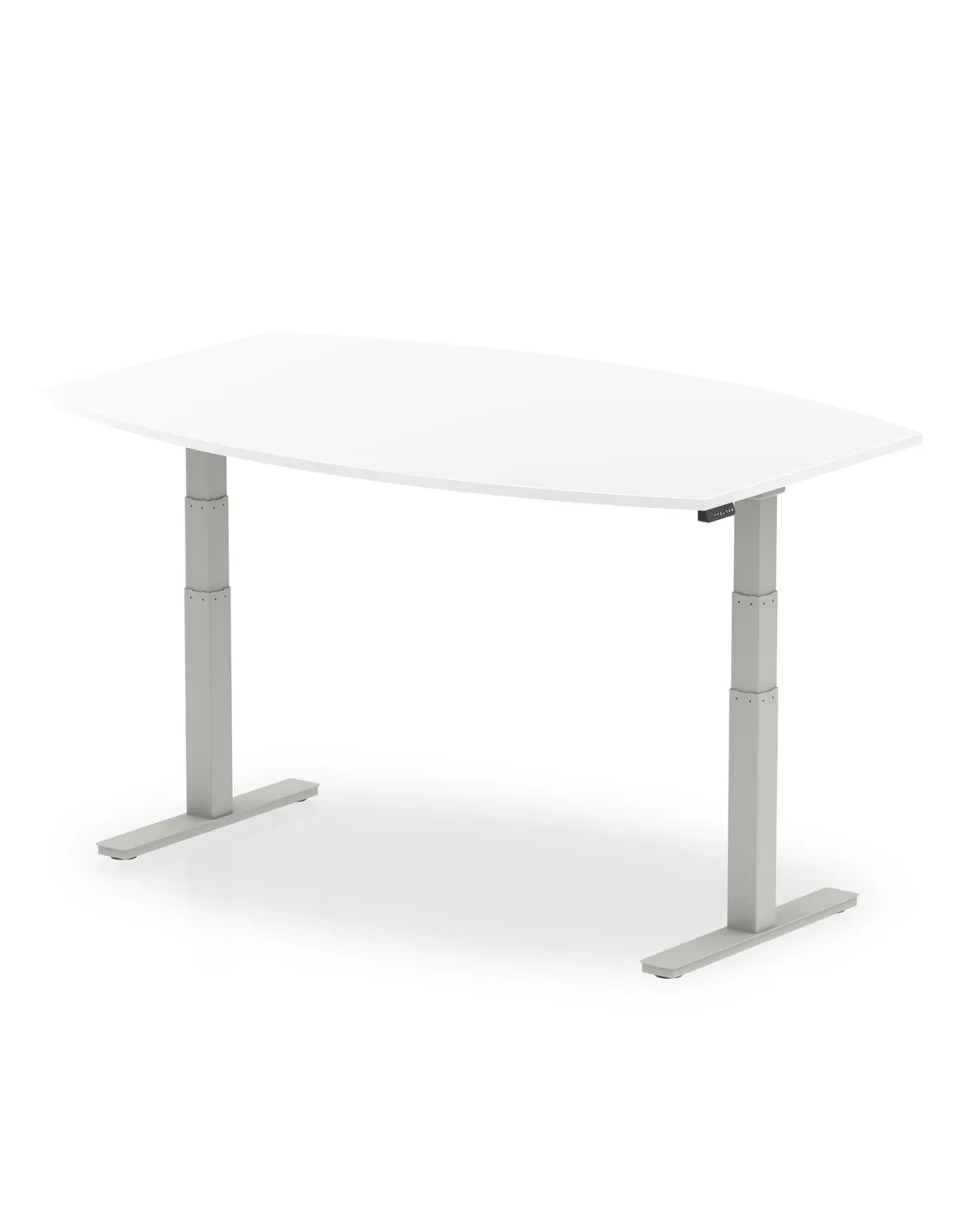 - This boardroom table features a sleek high gloss white surface with a writable finish, perfect for brainstorming sessions and meetings. Its silver height-adjustable legs allow customised comfort, while the barrel shape encourages collaborative working. According to customer feedback, it enhances both functionality and style in professional environments.
