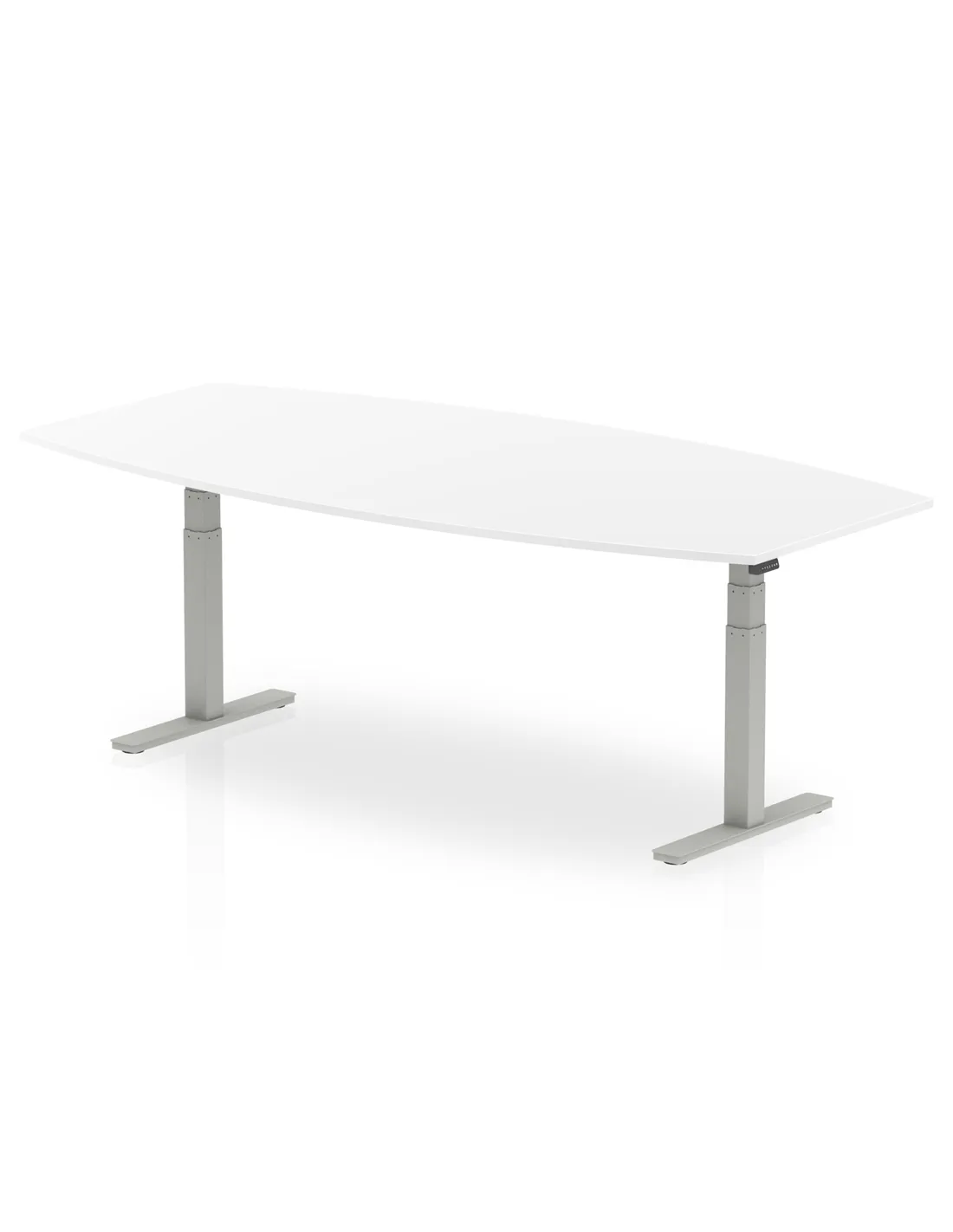 Dynamic High Gloss 2400mm Writable Boardroom Table White Top Silver Height Adjustable Leg