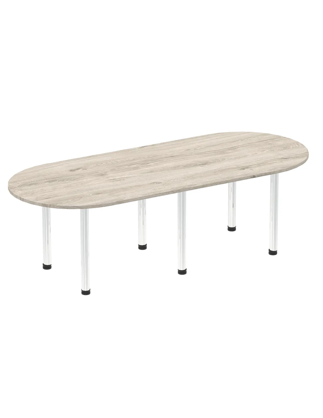 Dynamic Impulse 2400mm Boardroom Table Grey Oak Top Chrome Post Leg