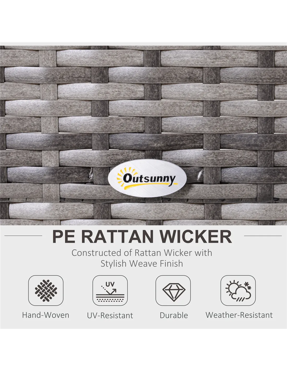 Makes those special times spent with friends in your garden better than ever before, thanks to this five-piece garden sofa set from Outsunny. Using hand-woven PE rattan. Curved in shape for a more intimate and cosy feeling, each seat of the conservatory furniture is with a thick foam seat cushion with a washable cover to ensure you can lounge comfortably, with back cushions for support. Finished with legs for balance and a matching coffee table. Effortless style whilst you sit under the sun.