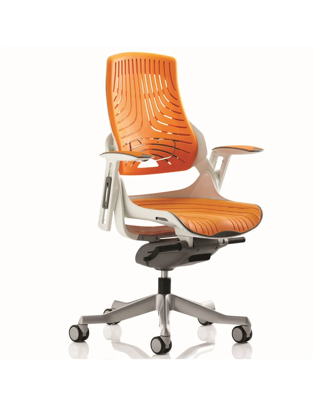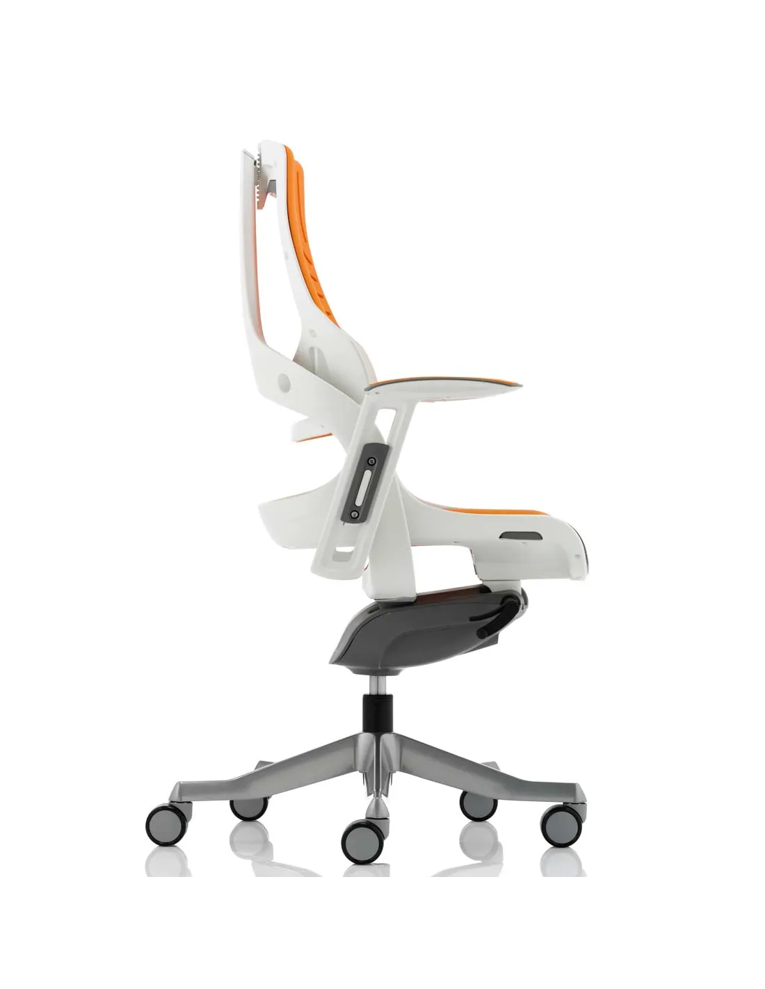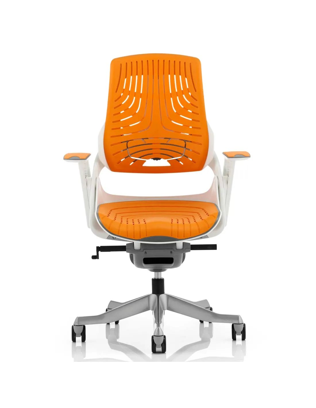 Dynamic Zure Executive Office Chair White Shell Elastomer Gel Orange With Arms