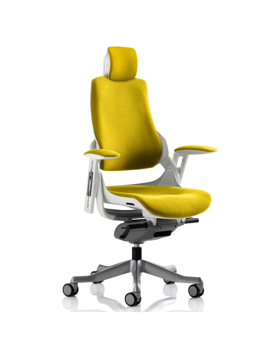 Dynamic Zure Office Chair White Shell With Headrest Fully Bespoke Colour Senna Yellow