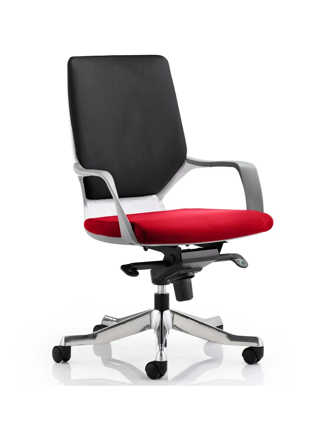 Elegant white or black acrylic shells cradle the most stylish of executive chairs – the Xenon. The shell swoops down from the generously proportioned backrest to integral slim, shaped, arms which fold around to the underside of the seat shell. A high quality knee tilt ensures maximum comfort and avoids discomfort through upper leg blood vessel constriction. High density moulded foams and an integral contoured lumbar support add to the easy-seating package. A brushed aluminium five star base continues the focus on sophisticated styling at ground level. In chemistry Xenon is a member of the noble gas family – in seating it is a member of the style and comfort family.