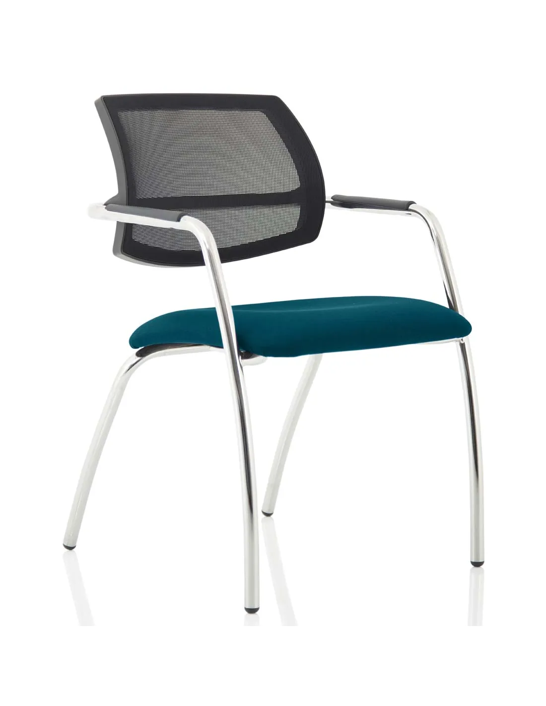 - The bespoke Maringa Teal fabric adds a vibrant yet professional touch, complementing modern interiors with a splash of colour. Combined with the black mesh back and chrome frame, it creates a contemporary aesthetic that elevates any space.