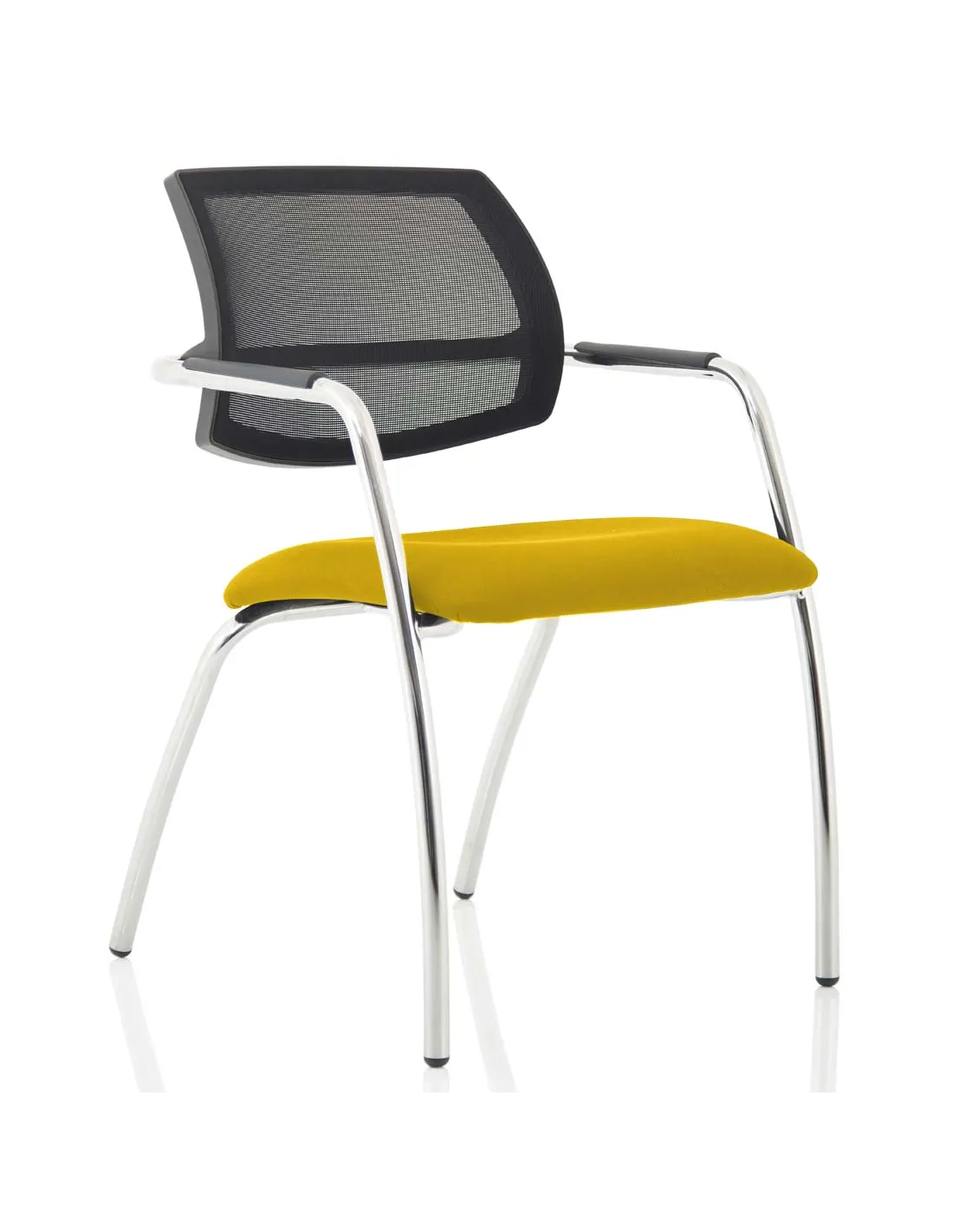 - This visitor chair is perfect for reception areas, meeting rooms, and office waiting spaces. Its vibrant Senna Yellow fabric combined with a sleek chrome frame adds a modern touch, while the breathable mesh back ensures comfort during short to medium visits. The chair’s stackable design also makes it suitable for multi-purpose rooms where space optimisation is essential.
