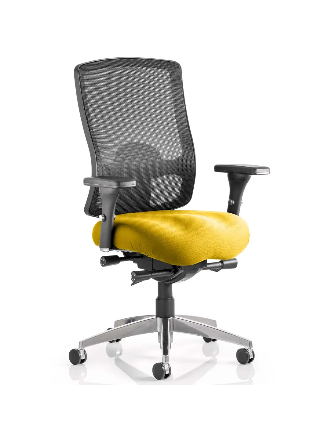 - Yes, the bespoke Senna Yellow fabric seat combined with a sleek black mesh back and chrome frame offers a vibrant yet professional look. Its multi-adjustable armrests, seat slide, and height-adjustable backrest allow seamless adaptation to various workspaces, making it ideal for both home offices and corporate settings.