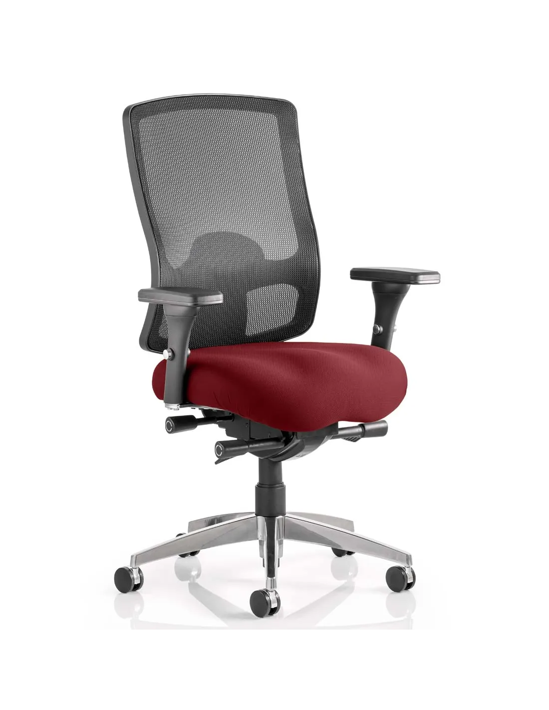 The Regent is ergonomically designed and has a luxurious cold cure foam seat that provides a pleasant seating experience for the most demanding environments. The chair has many adjustment options thanks to its quality multi functional mechanism and soft adjustable armrests. The stylish high backrest which is upholstered in a breathable mesh is easily height adjustable and equipped with a height adjustable lumbar support. Finished elegantly with a brushed aluminium base, this chair is the all round solution.