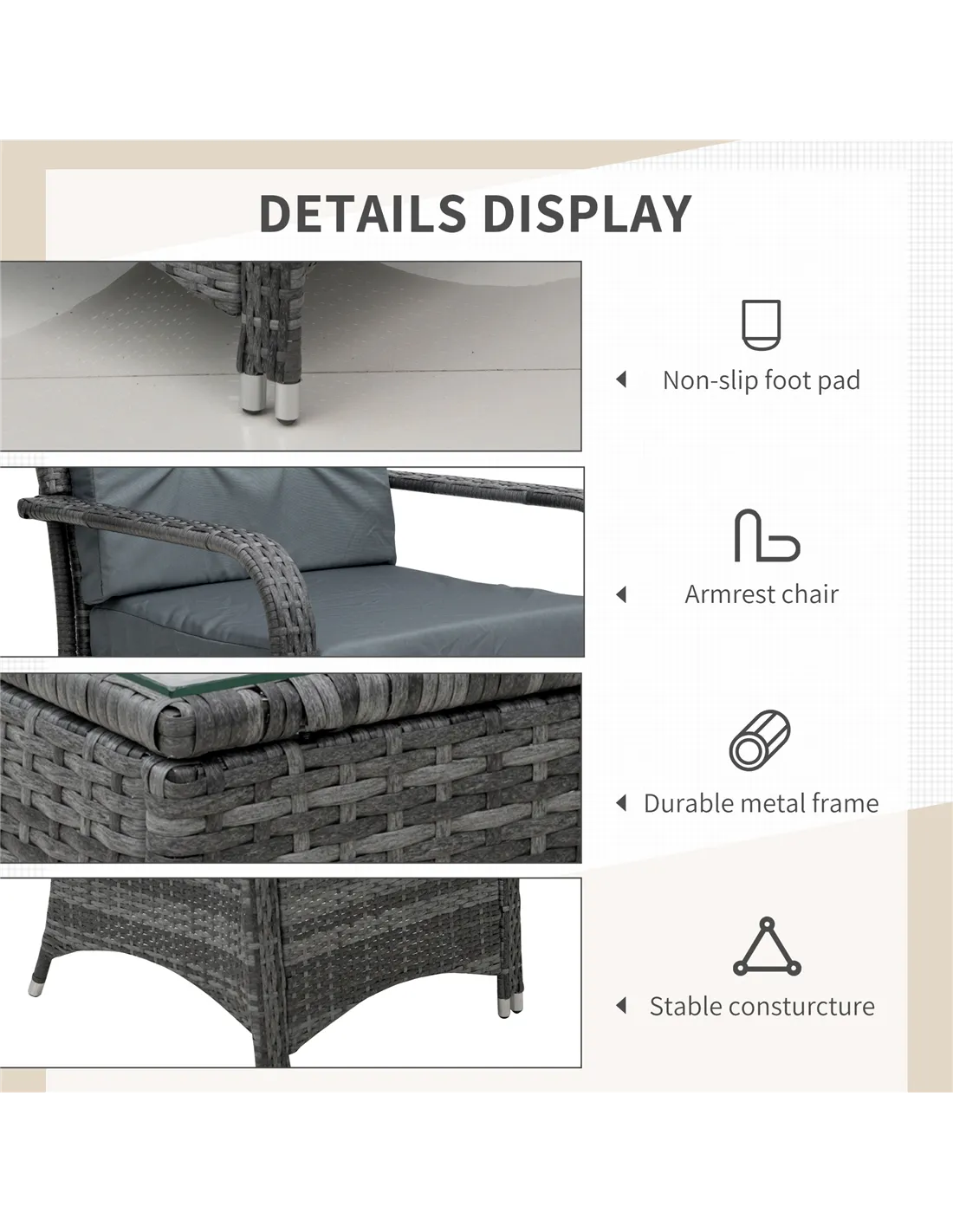Outsunny 2-Seater Rattan Table Chair Bistro Garden Furniture Set Wicker Table Outdoor Patio