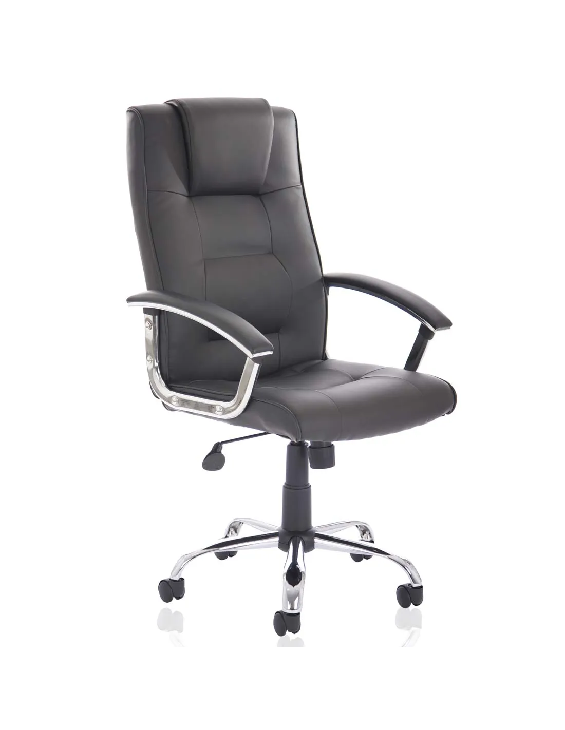 - Chrome detailed five-star base and fixed padded arms for stability and style