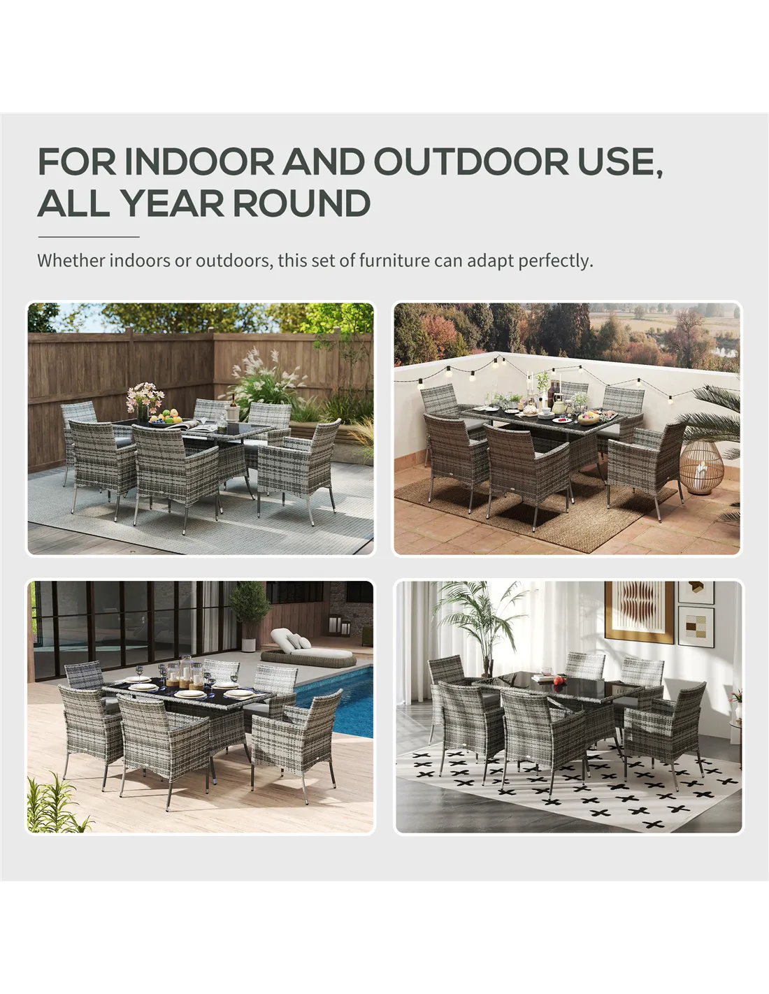 - Suitable for both indoor and outdoor use all year round