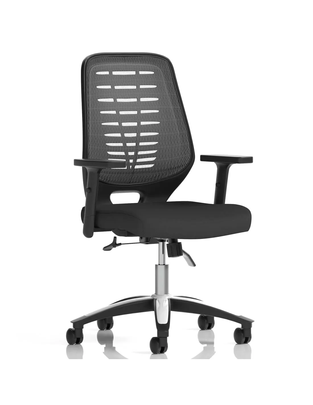 Chosen time and time again, the Relay is the ever popular mesh operator option. Modern styling with silver and chrome accented base & gas lift and height adjustable armrests are complimented by a cool vented backrest design that is finished in a choice of either black or silver breathable mesh that allows you to keep your cool. The Relay makes for a versatile chair for all office environments.