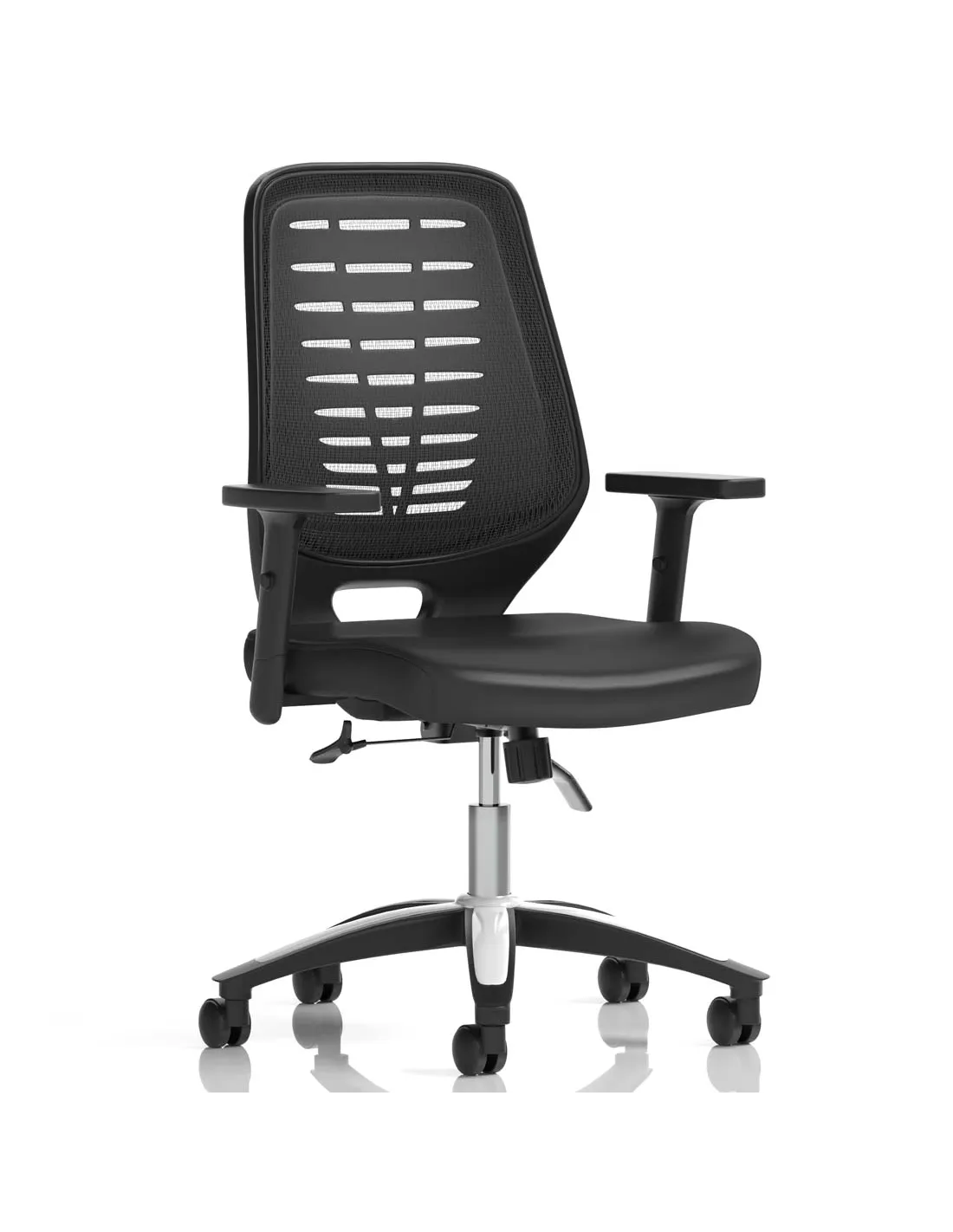Chosen time and time again, the Relay is the ever popular mesh operator option. Modern styling with silver and chrome accented base & gas lift and easy fold armrests are complimented by a cool vented backrest design that is finished in a choice of either black or silver breathable mesh that allows you to keep your cool. The Relay makes for a versatile chair for all office environments.