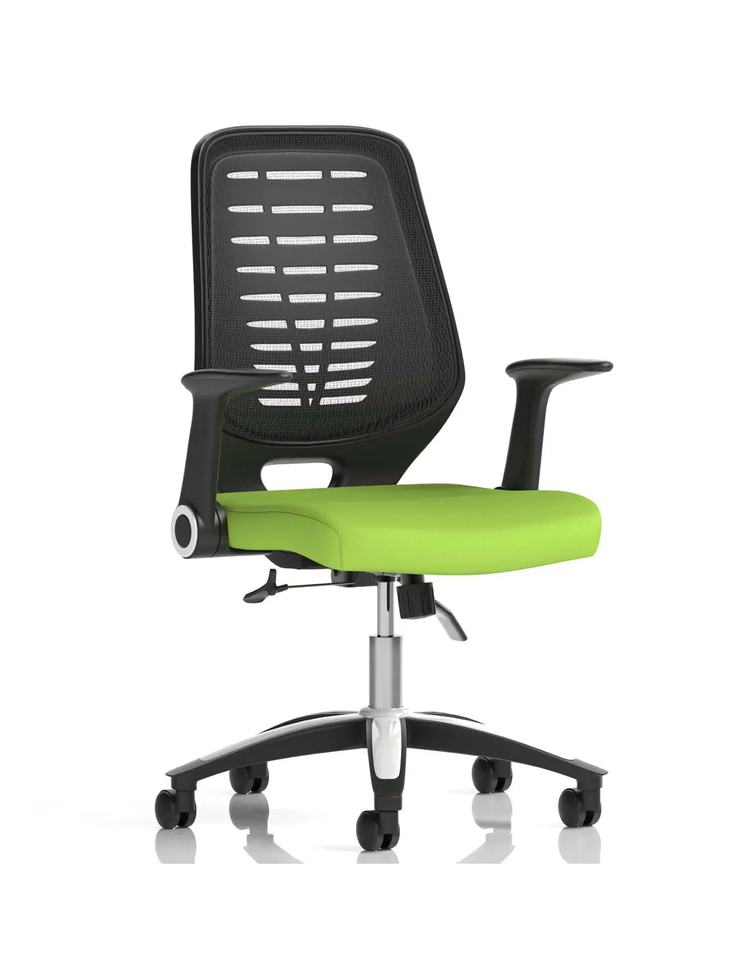 Chosen time and time again, the Relay is the ever popular mesh operator option. Modern styling with silver and chrome accented base & gas lift and easy fold armrests are complimented by a cool vented backrest design that is finished in a choice of either black or silver breathable mesh that allows you to keep your cool. The Relay makes for a versatile chair for all office environments.