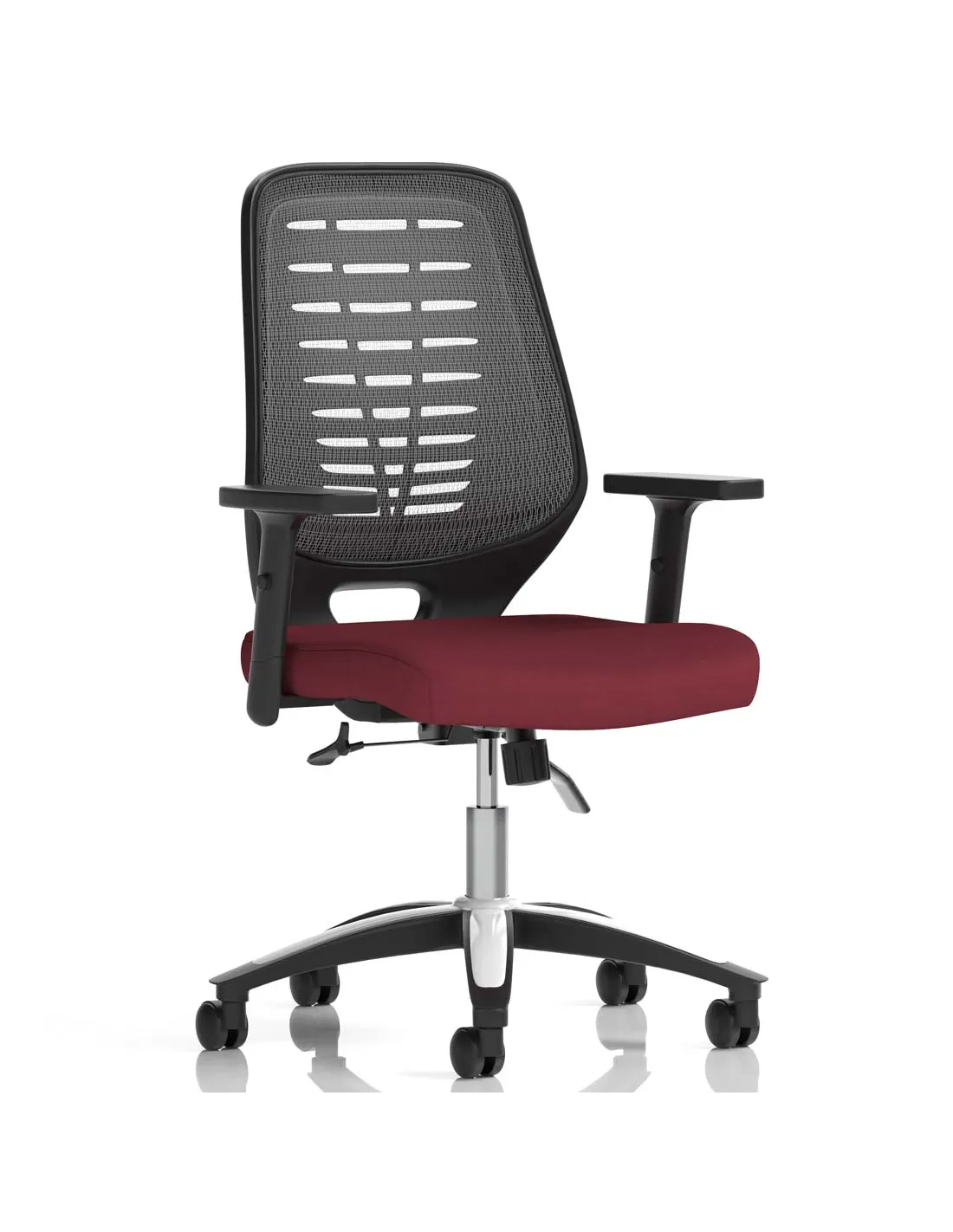 At FastDaddy, with over 12 years of experience in online retail, we proudly present the Dynamic Relay Task Operator Chair in bespoke Silver Back with Ginseng Chilli seat and height-adjustable arms. Crafted by Dynamic Office Solutions - a trusted name in British office furniture since 2006 - this chair combines contemporary design with practical features to enhance your workspace comfort.