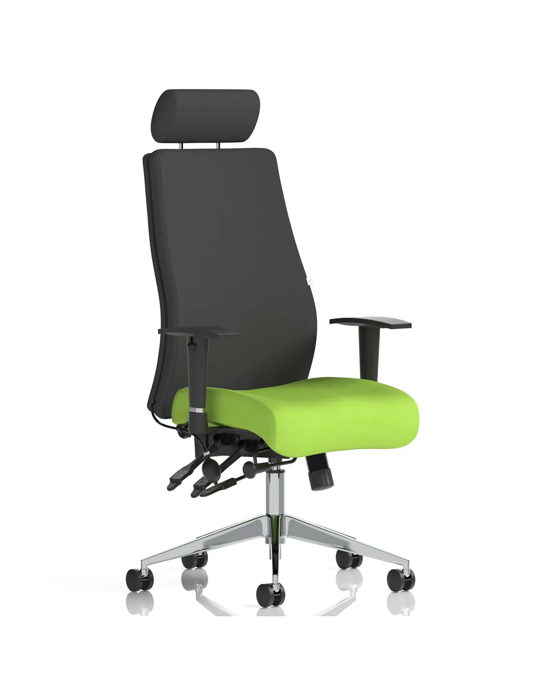 - Yes, the Dynamic Onyx chair offers bespoke fabric options, including the distinctive Myrrh Green seat combined with a black back and chrome frame finish. This allows you to personalise your workspace with a stylish, contemporary chair that complements your interior design.
