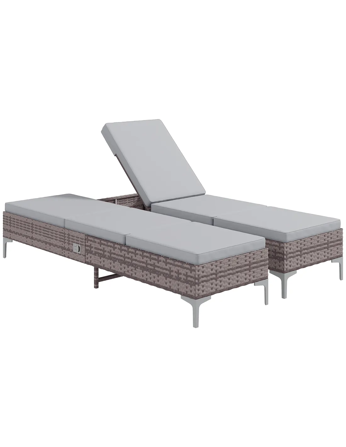 Outsunny Outdoor PE Rattan Sun Lounger Set of 2, Multi-position Backrest Adjustable Single Recliner Sunbed Daybed with Removeable & Washable Cushion, for Patio, Garden, Light Grey