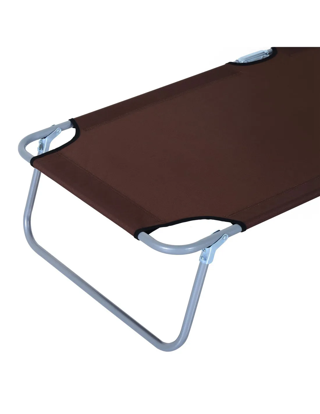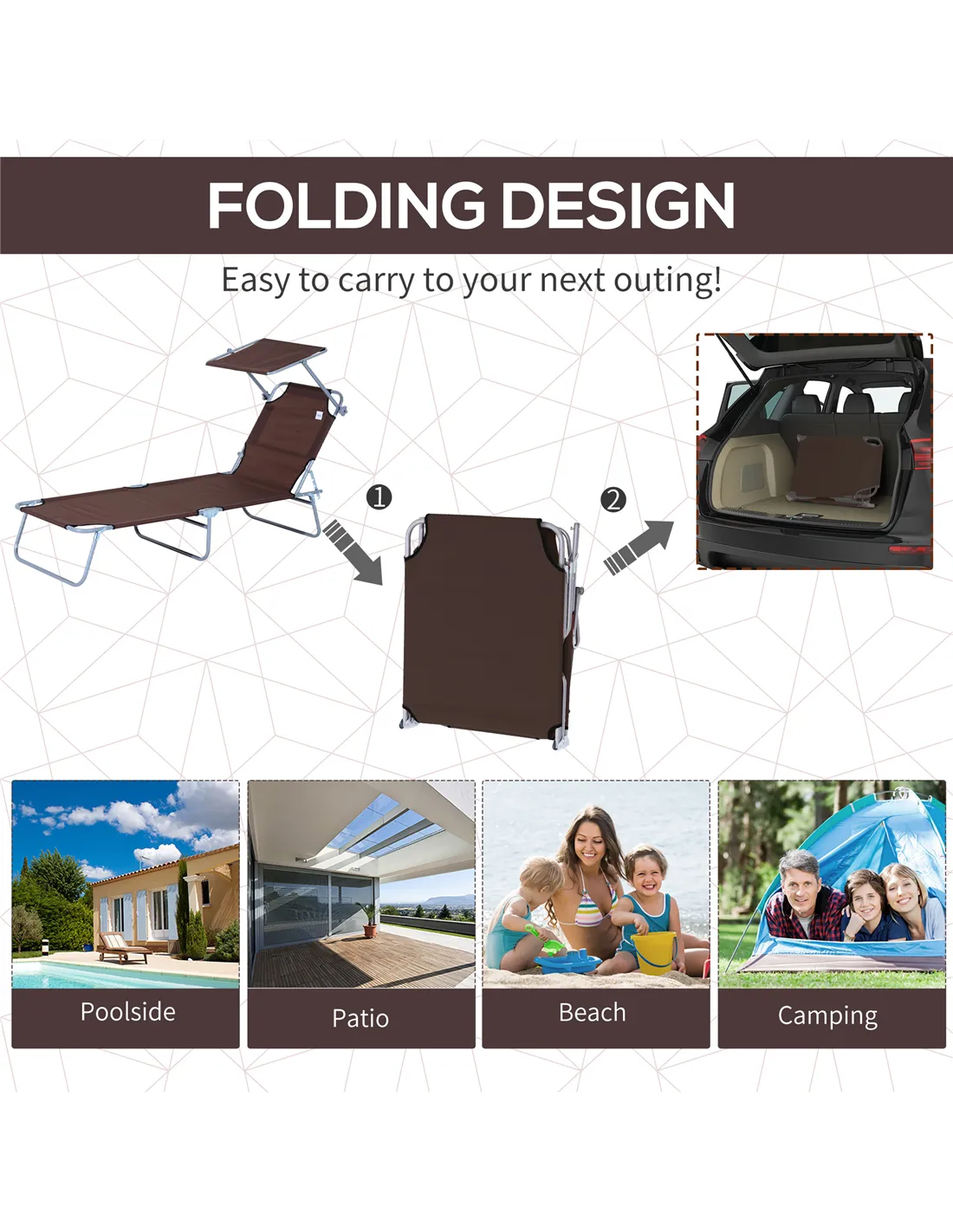 Outsunny Outdoor Foldable Sun Lounger, 4 Level Adjustable Backrest Reclining Sun Lounger Chair with Angle Adjust Sun Shade Awning for Beach, Garden, Patio, Brown