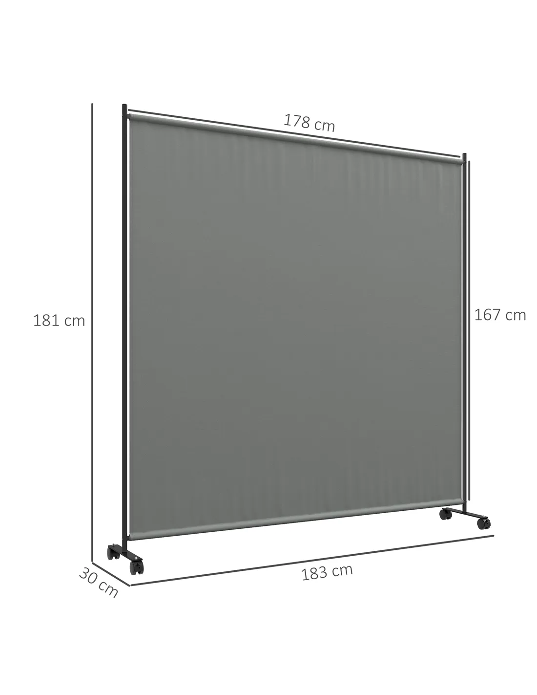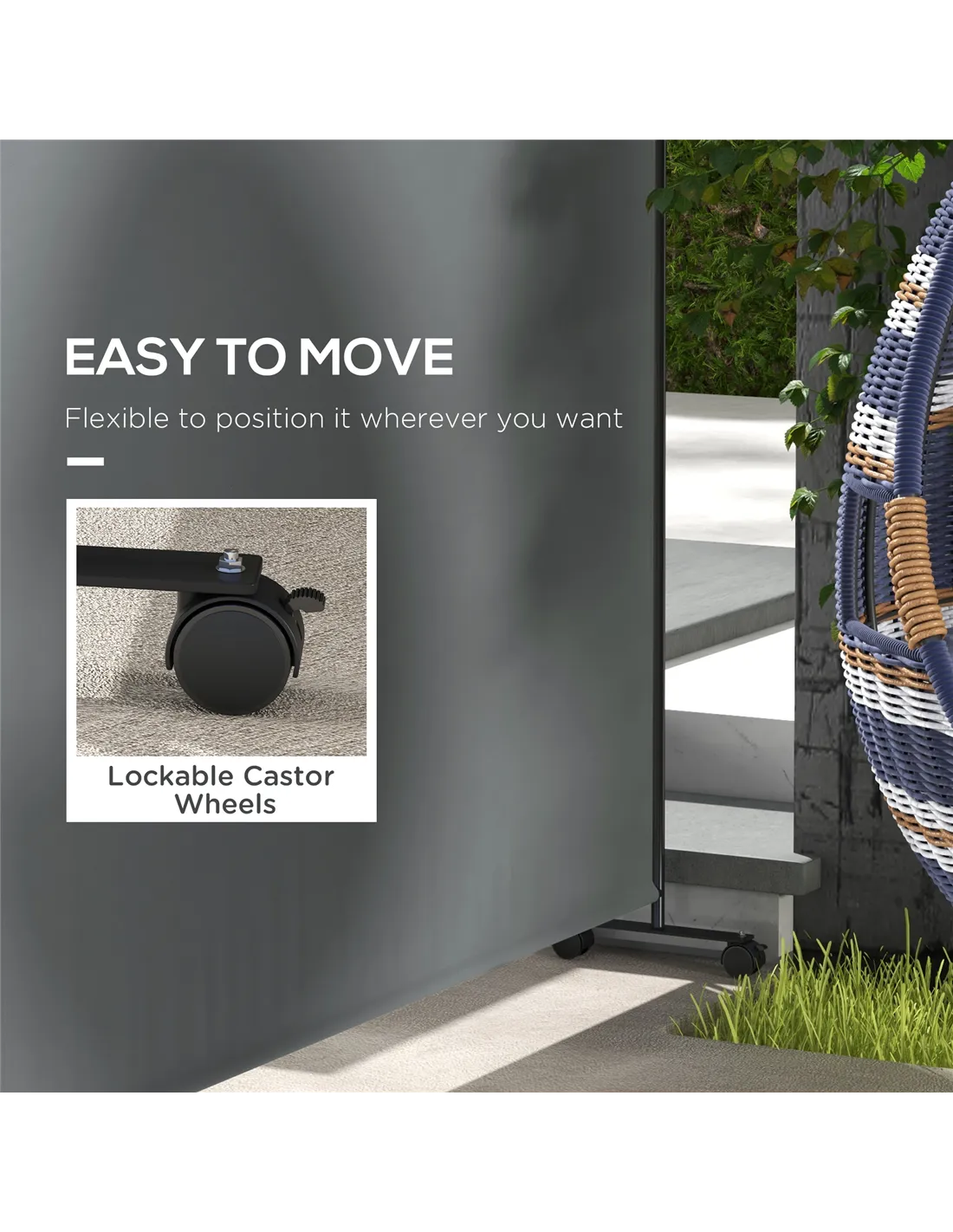 Divide outdoor space effortlessly with this Outsunny screen. Thanks to its wheeled base, you can move it around very easily, with brakes to stop it in the place you desire. Made from 180gsm polyester, the screen fabric blocks sun, heat and wind so you can relax properly. The 183 x 181cm size is large, for plenty of shade. With a powder coated steel frame, you can be confident this is a strong piece giving you your own privacy.