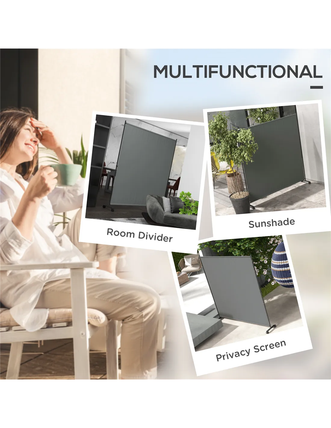 - Its mobility allows easy repositioning to suit changing sunlight or privacy needs throughout the day.