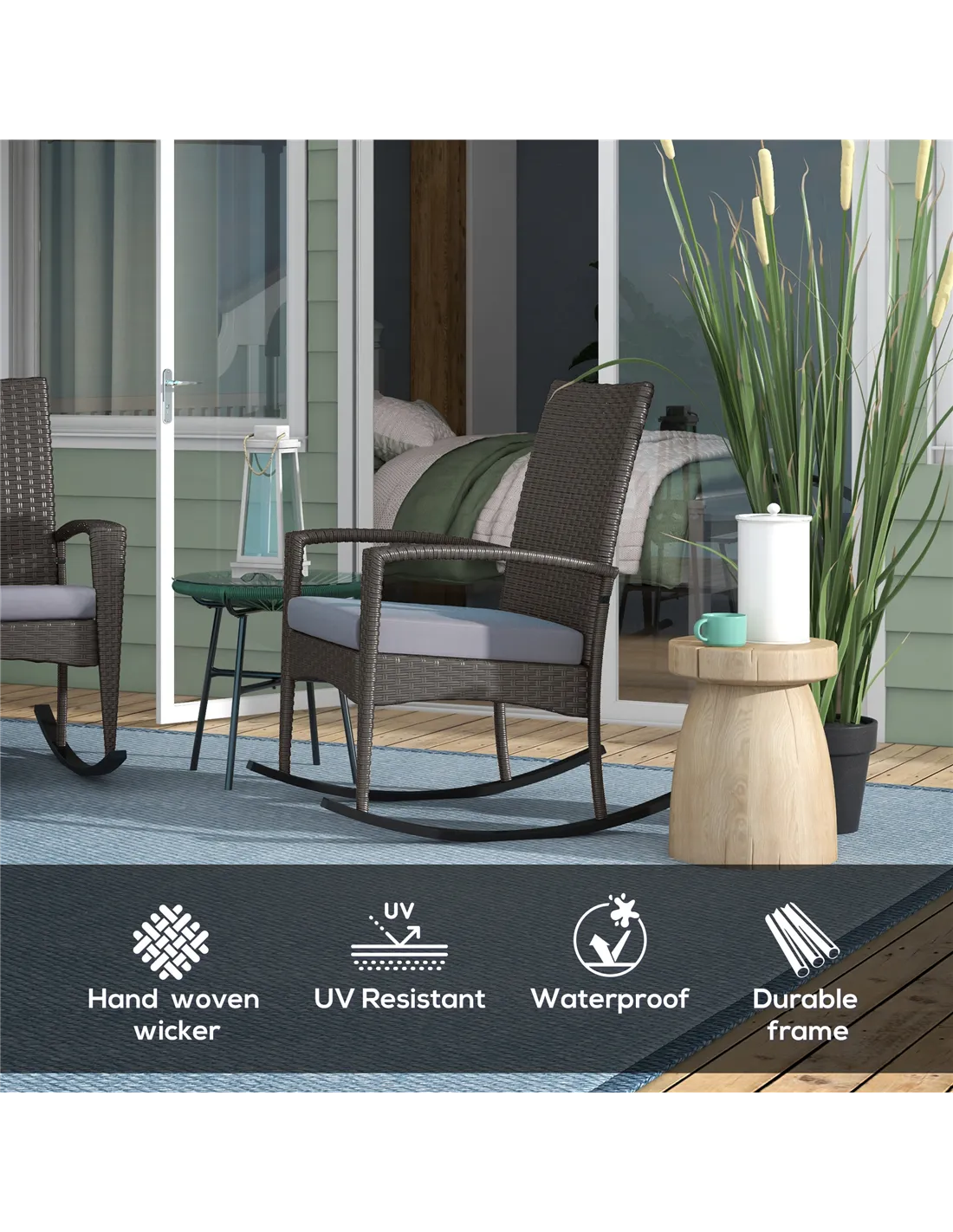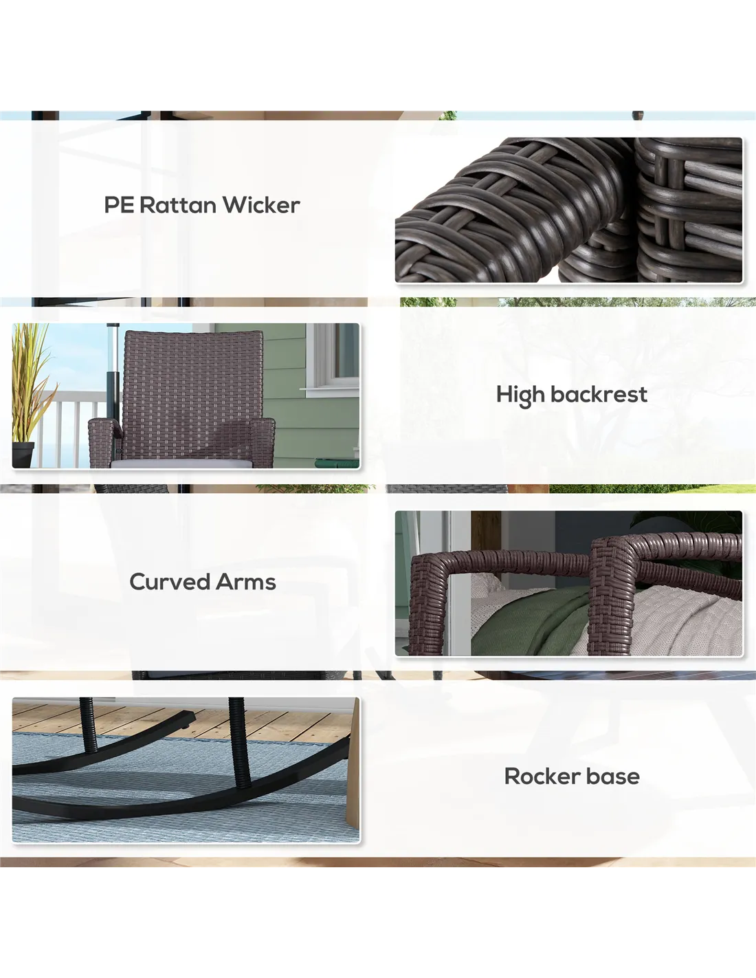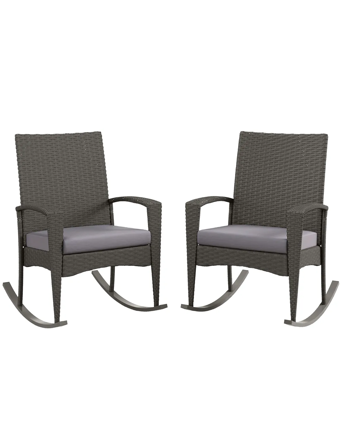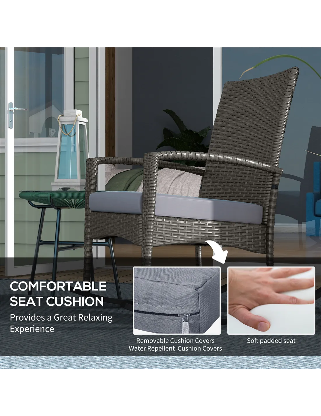 Outsunny Outdoor PE Rattan Rocking Chair Set of 2, Garden Rocking Chair Set with Armrest and Cushion, Grey